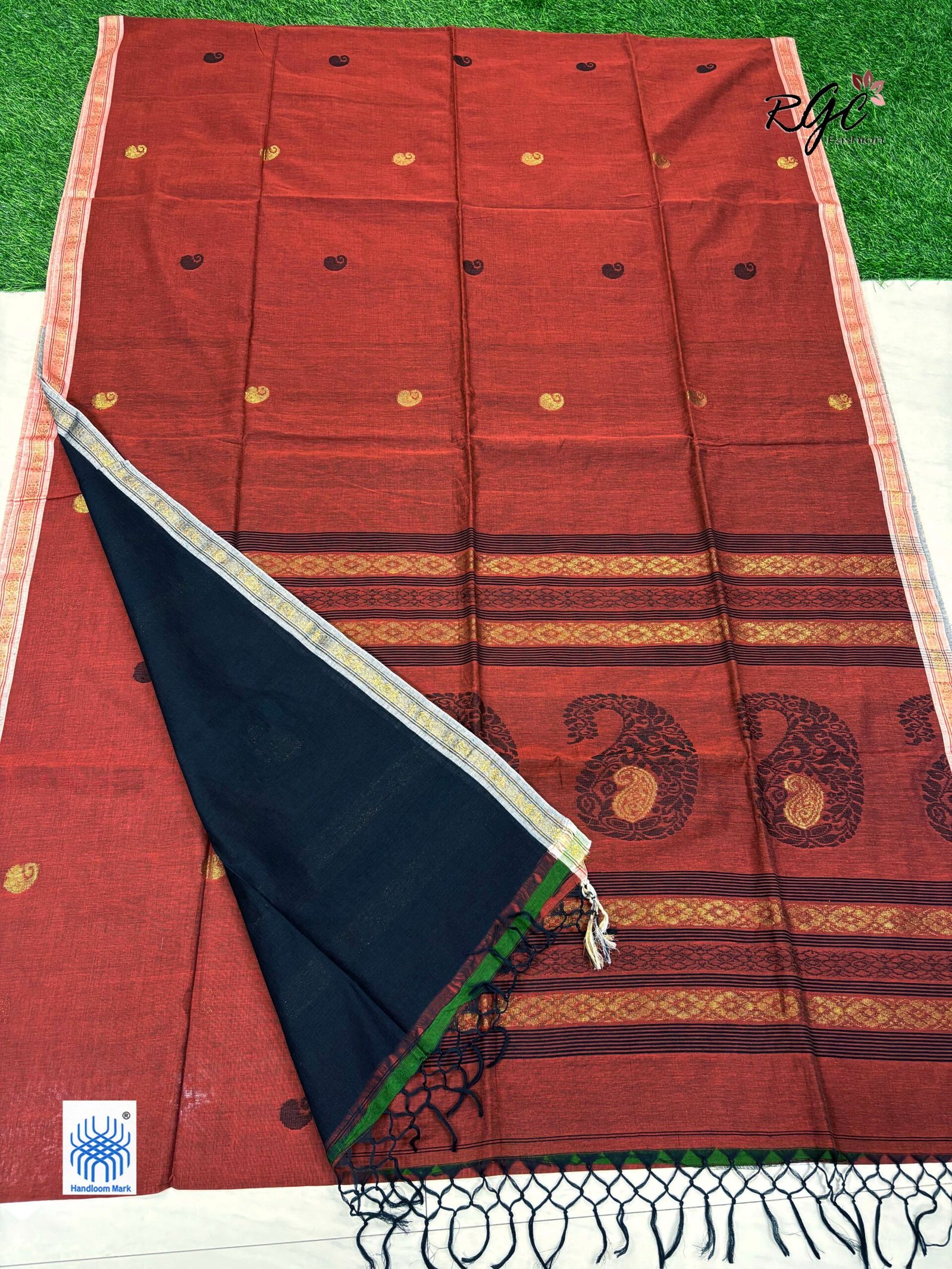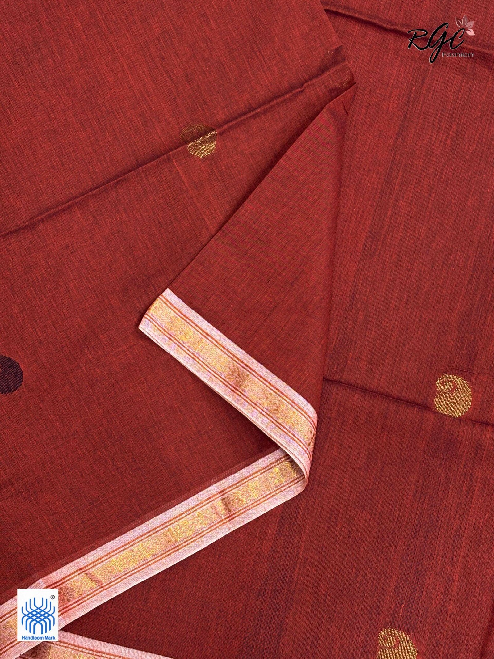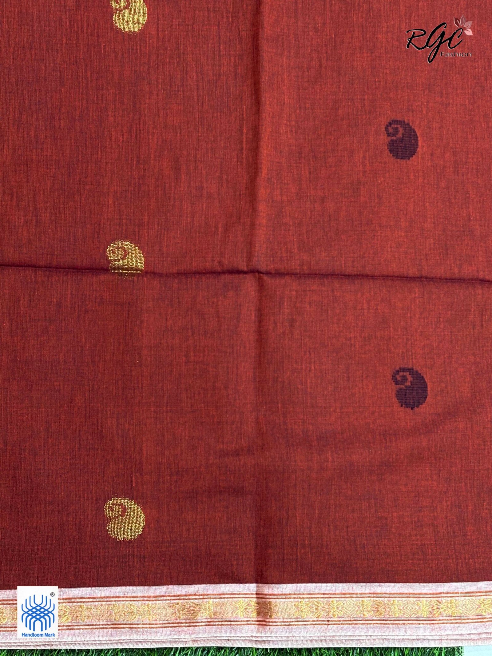 Rust Handloom Premium Khadi Cotton Jamdani Saree