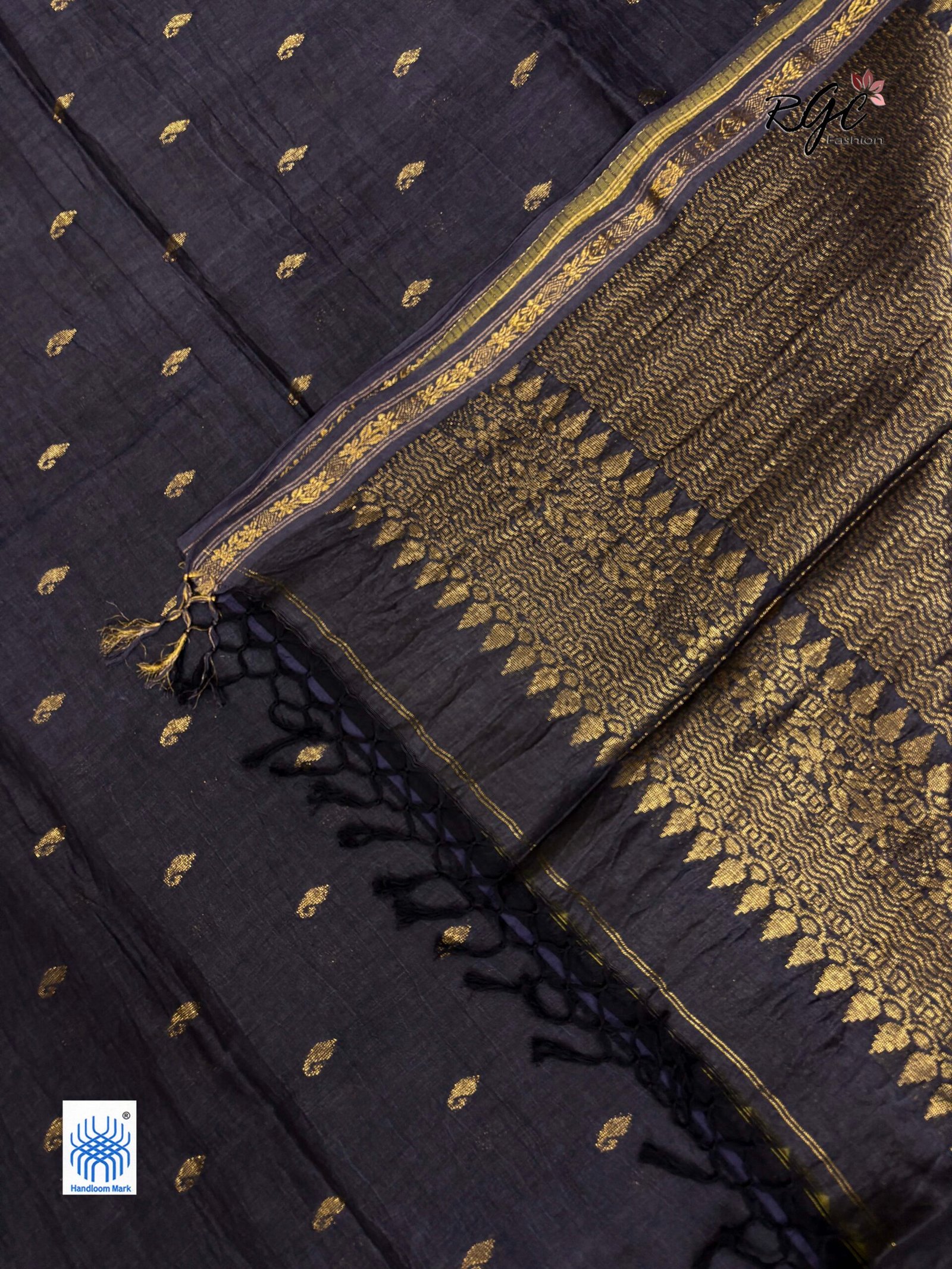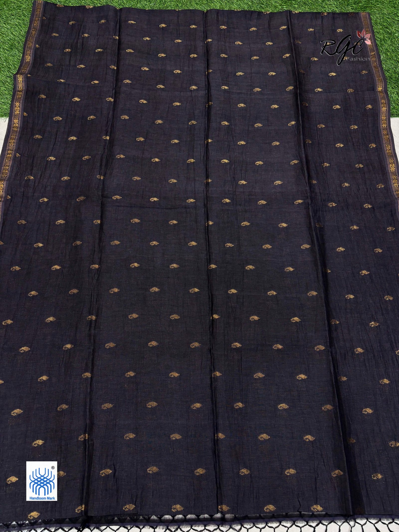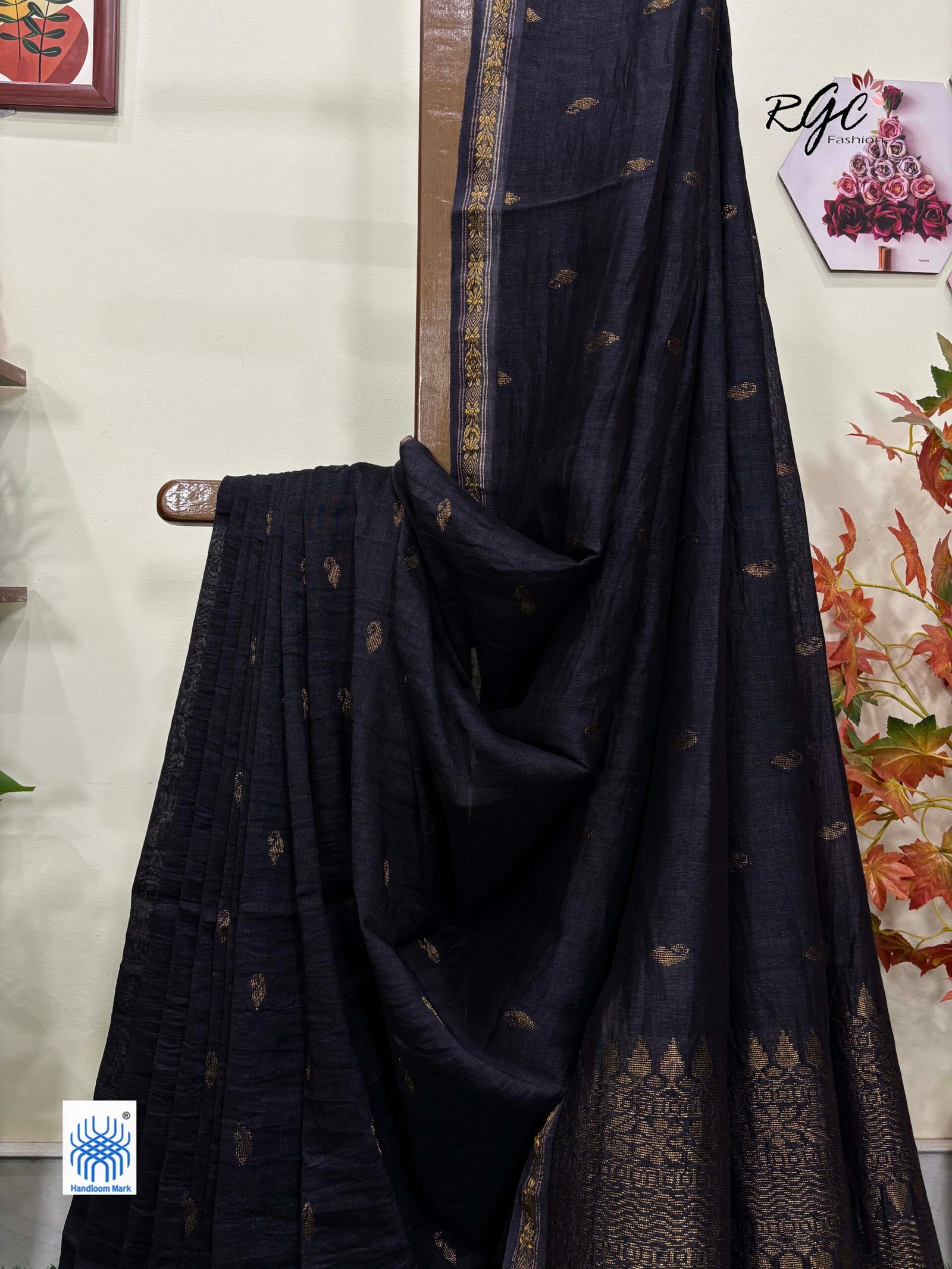 Navy Blue Paisly Organic Linen Jamdani Saree