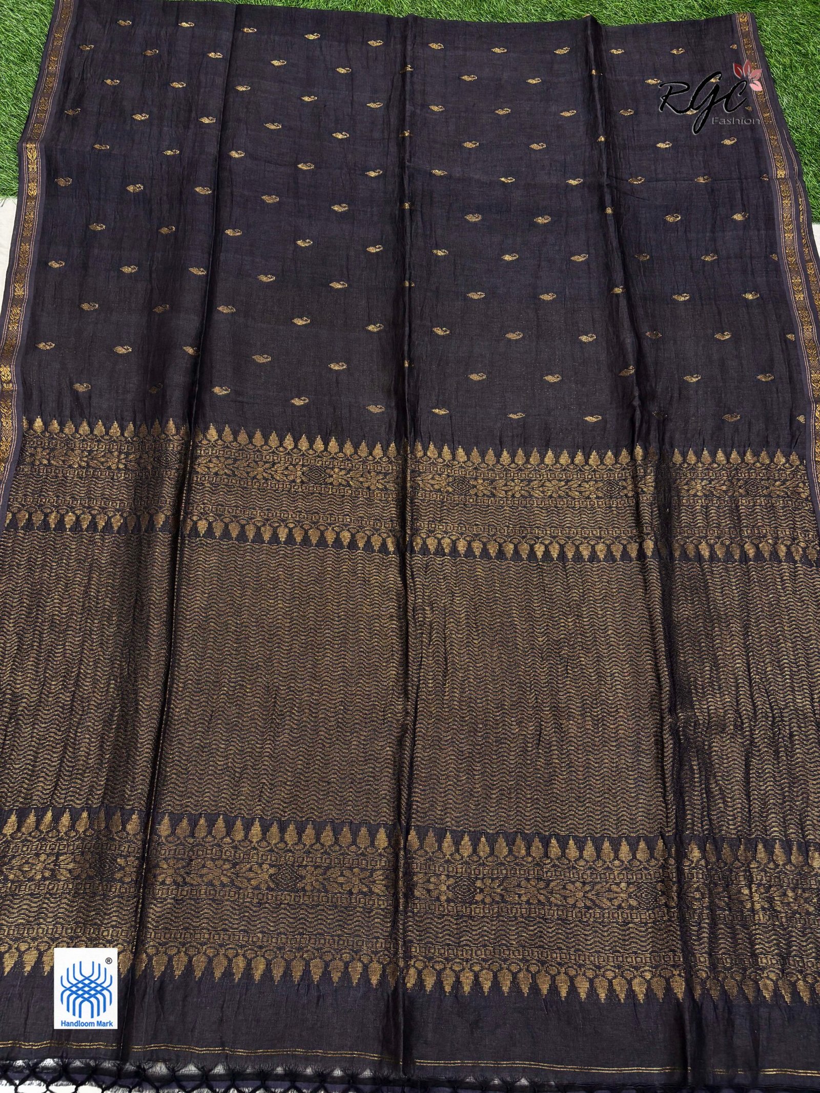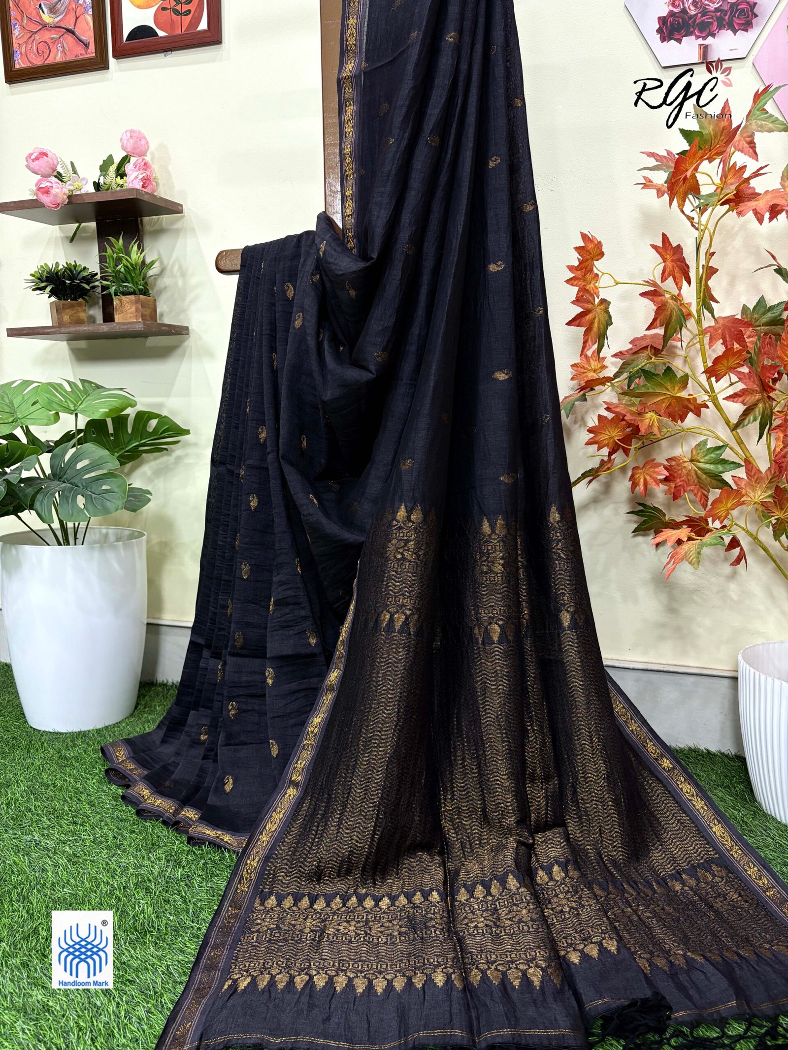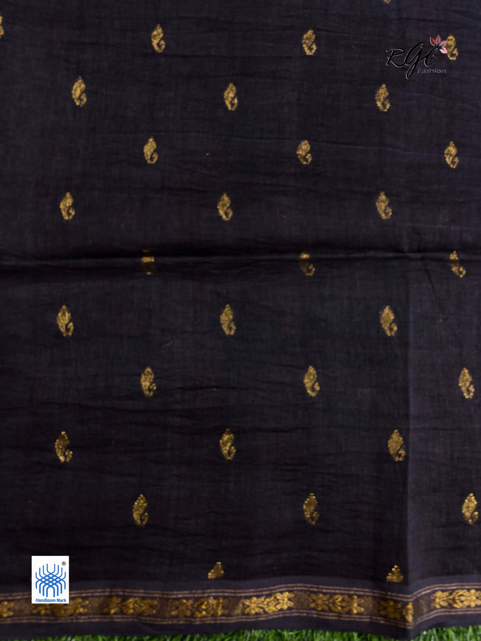 Navy Blue Paisly Organic Linen Jamdani Saree