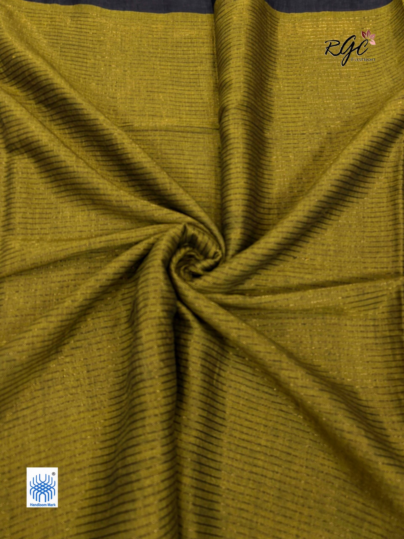 Greenish Blue Paisley Design Organic Linen Benarasi Saree