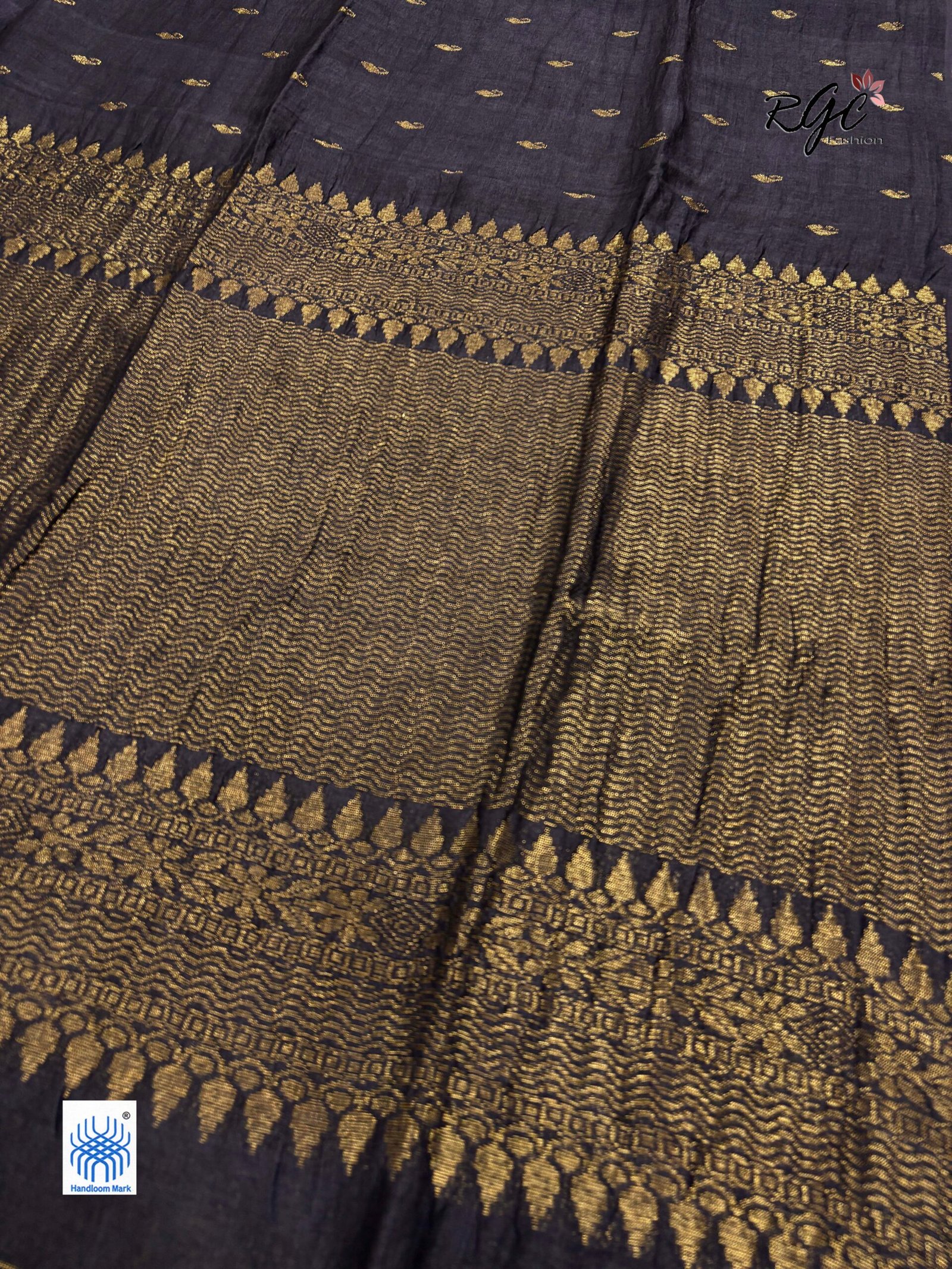 Chocolate Paisley Design Organic Linen Benarasi Saree