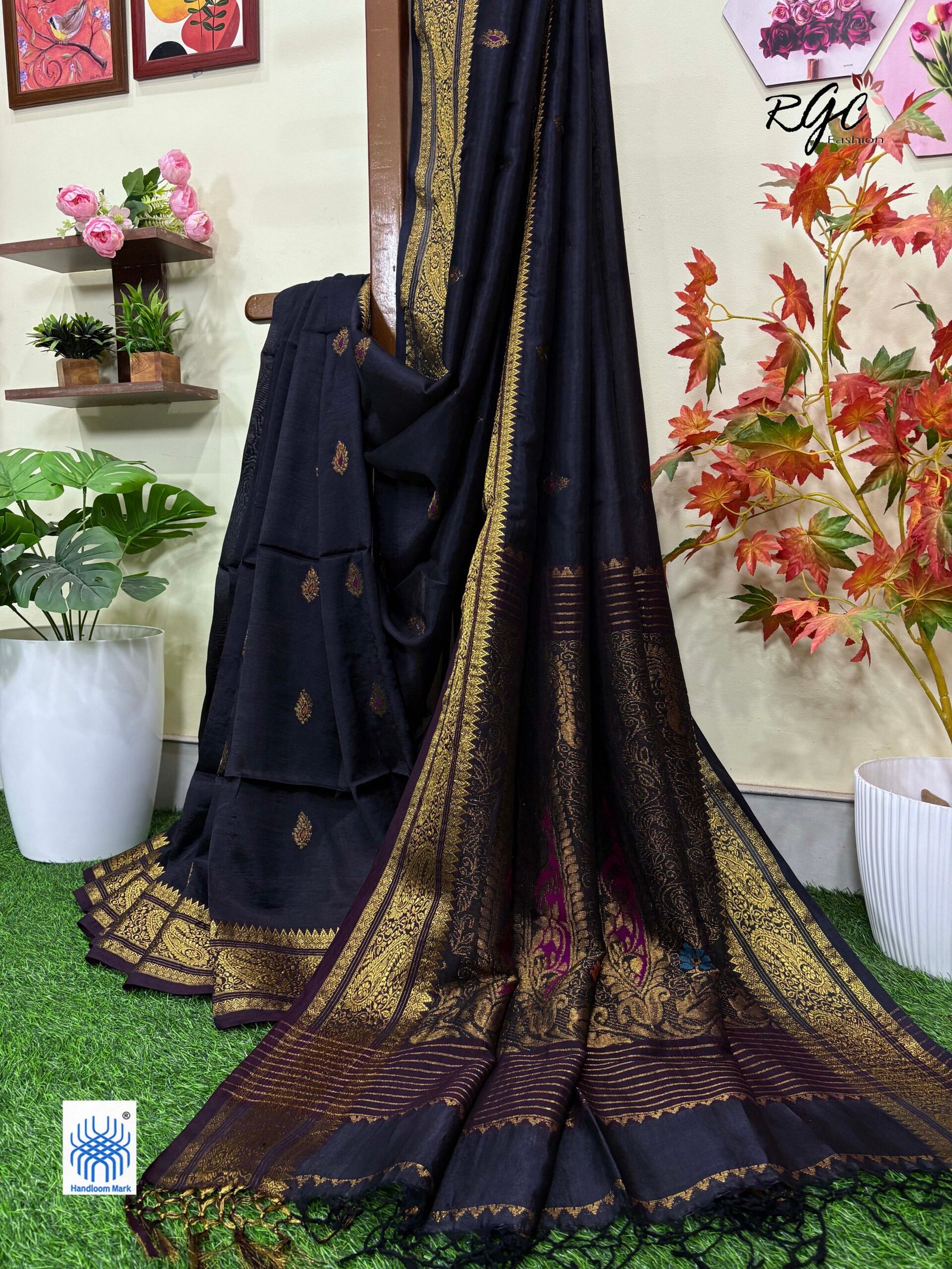 Black Bengal Handloom Katan Silk Benarasi Saree