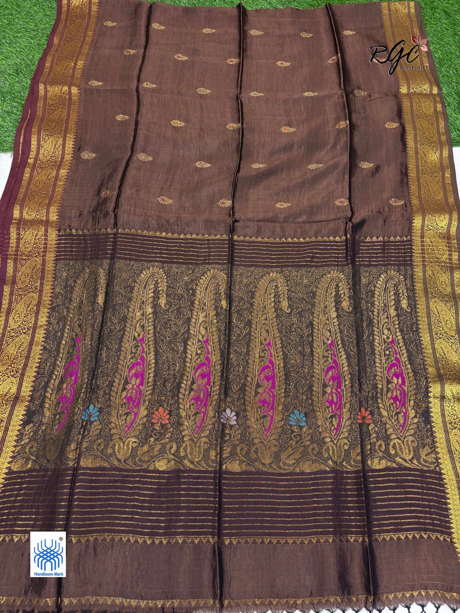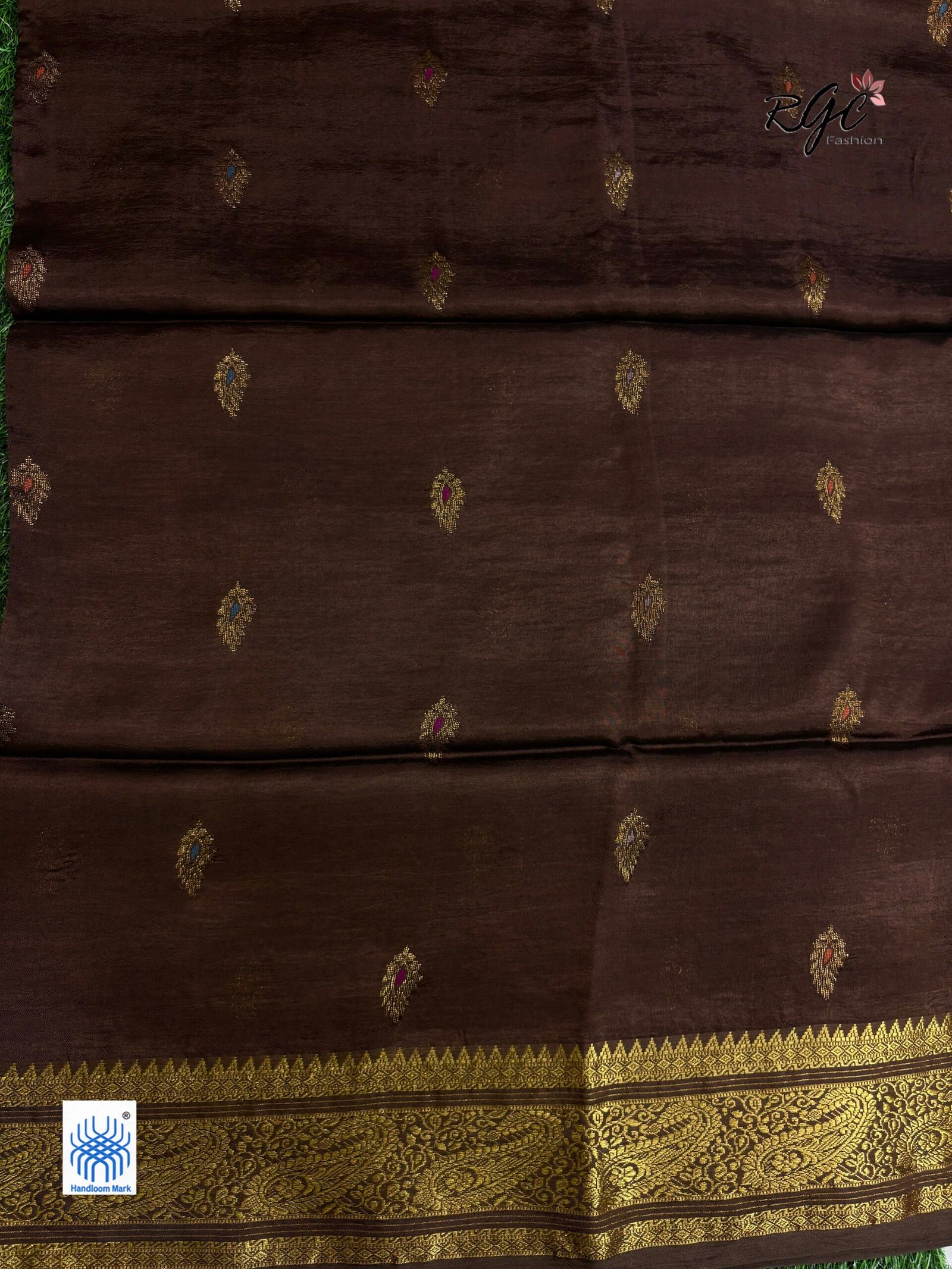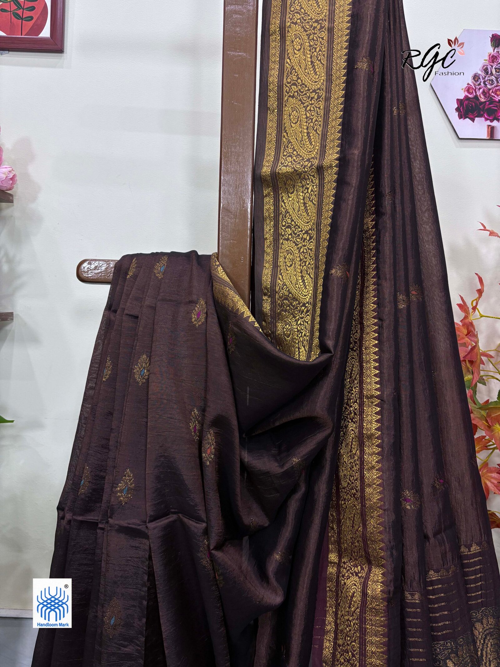 Brown Paisley Bengal Handloom Katan Silk Bridal Saree