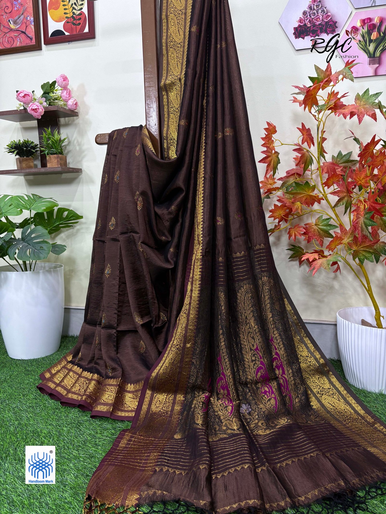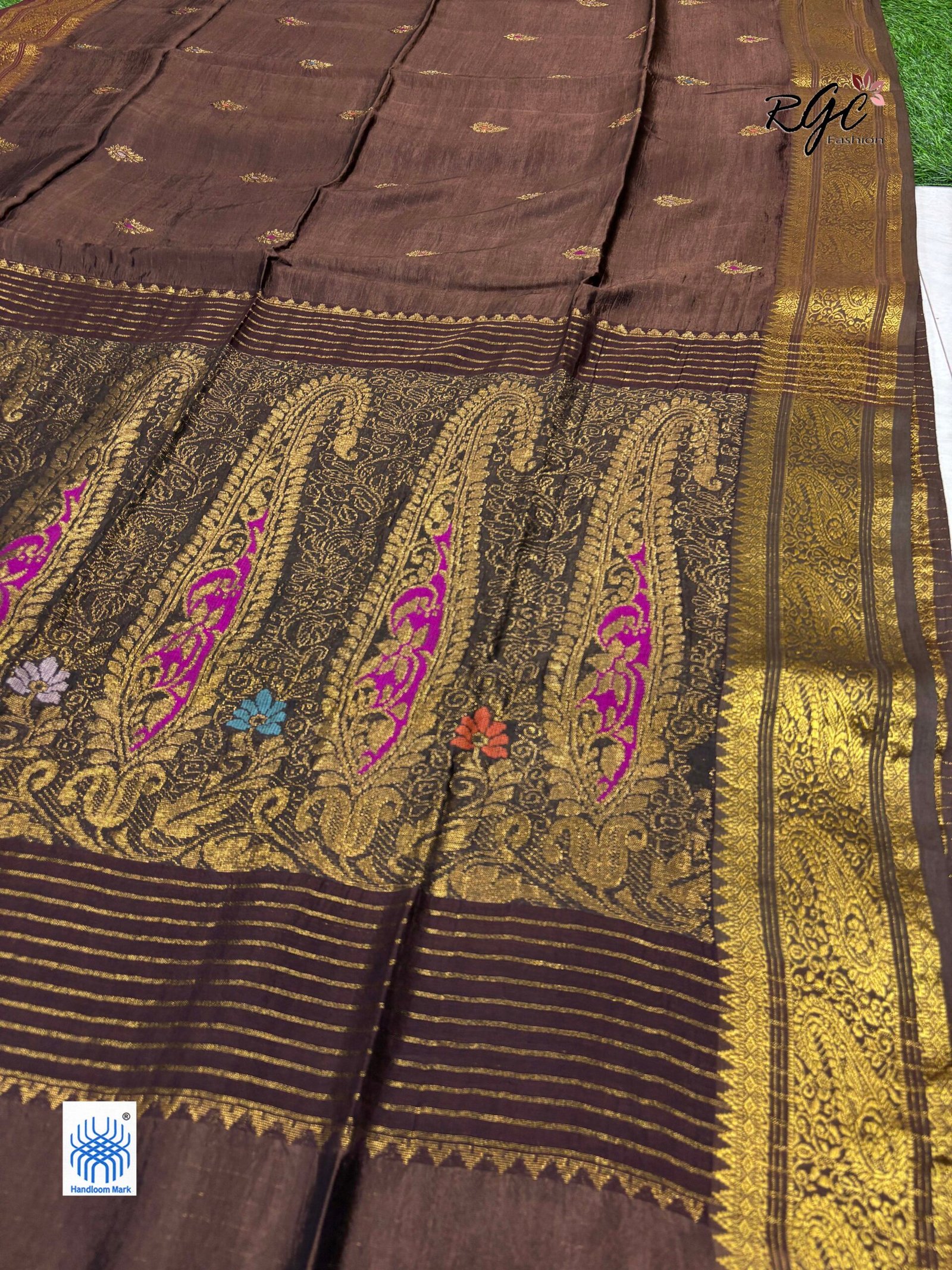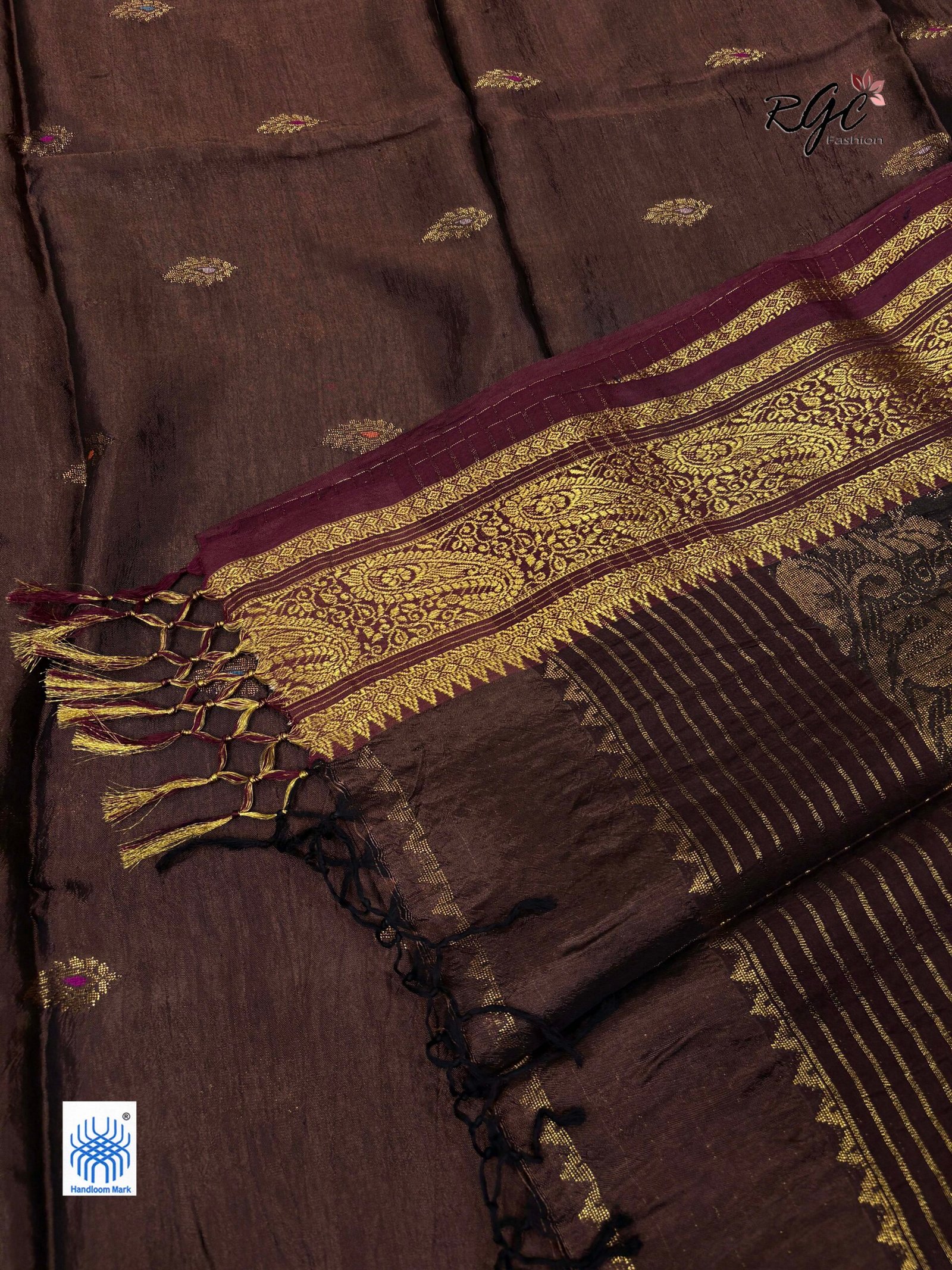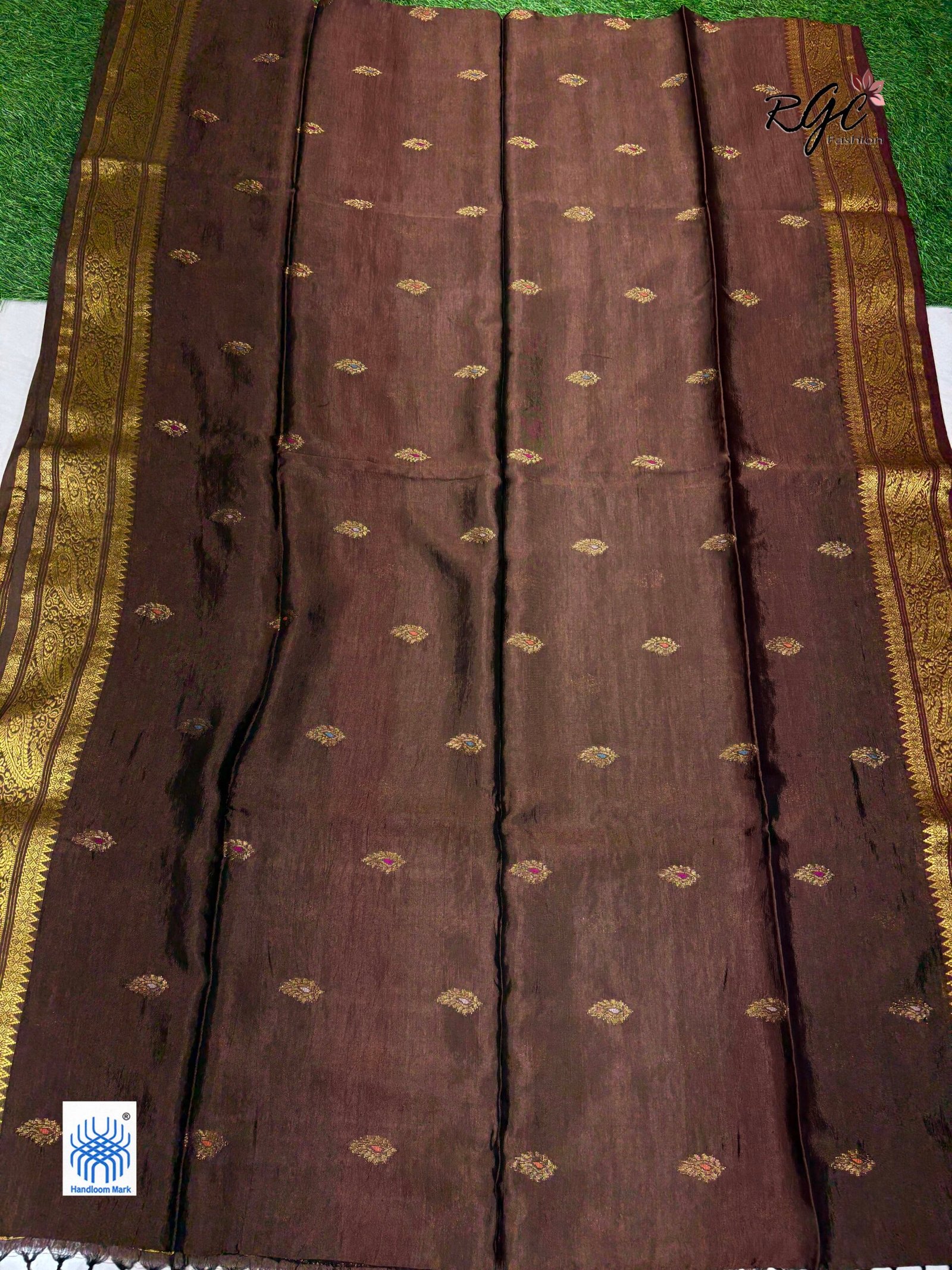 Brown Paisley Bengal Handloom Katan Silk Bridal Saree