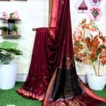 Wine Bengal Handloom Katan Silk Benarasi Saree