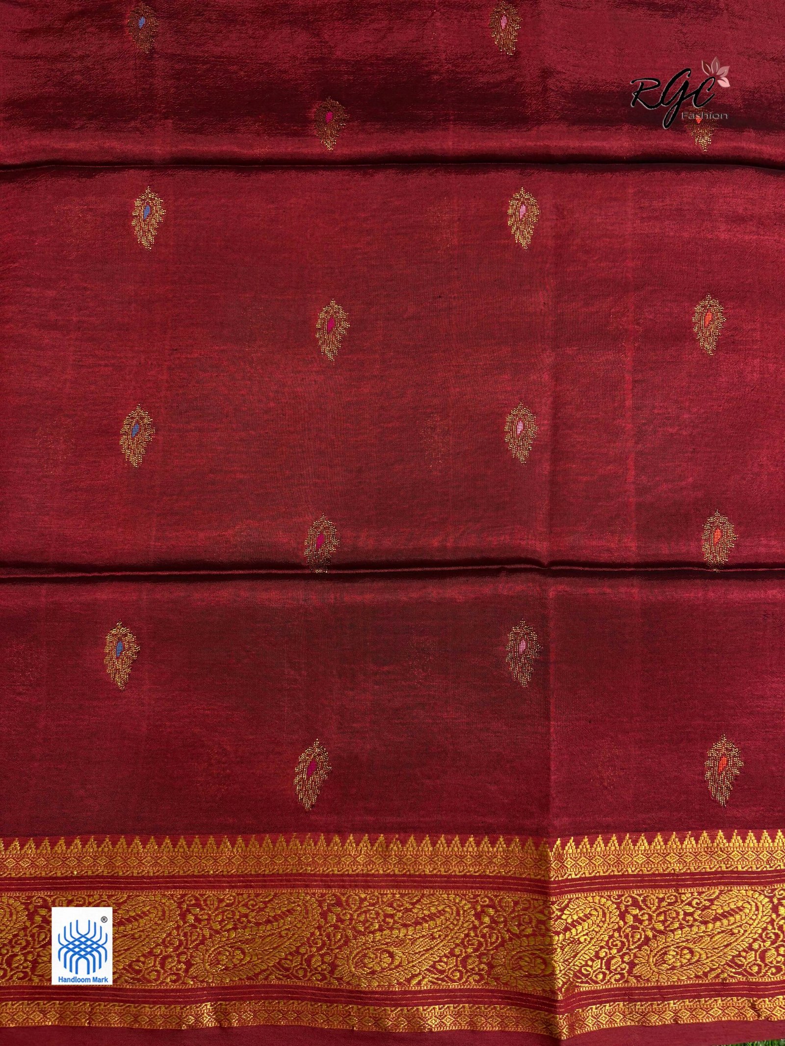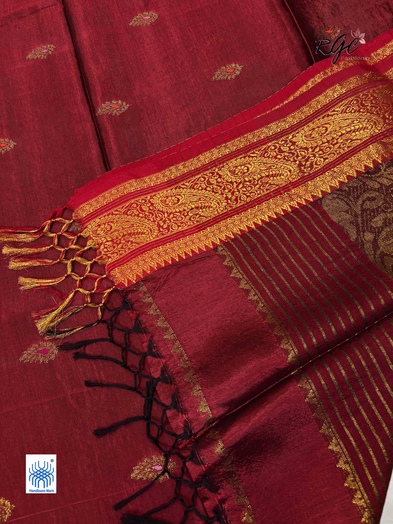 Maroon Bengal Handloom Katan Silk Sequence Work Jamdani Saree