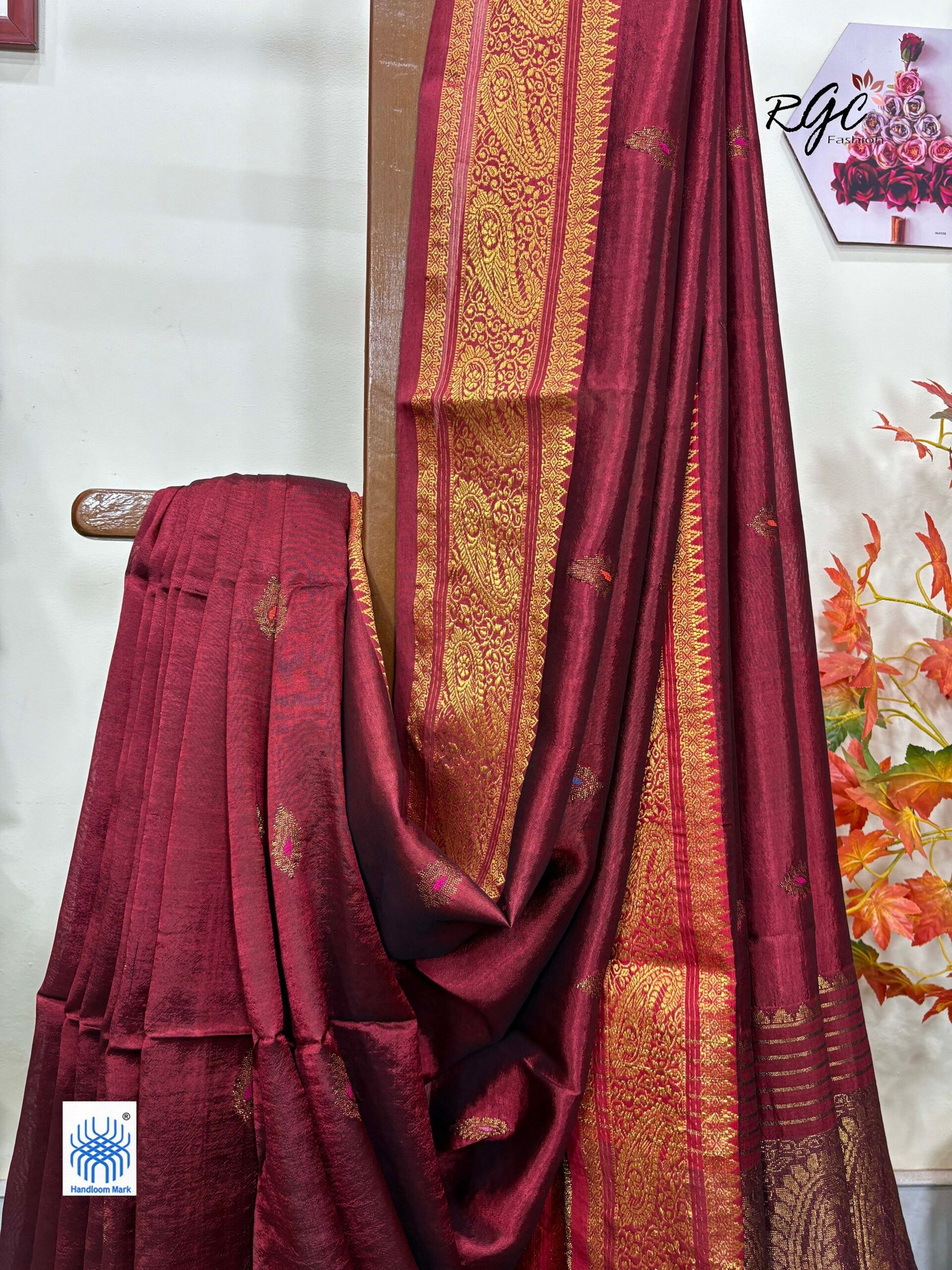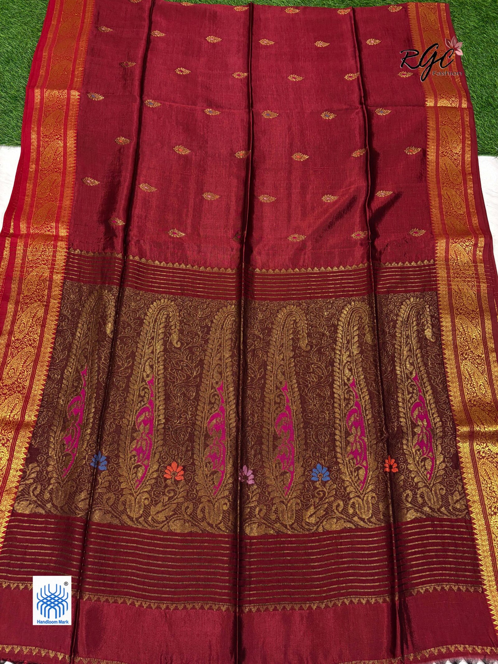 Beetroot Bengal Handloom Katan Silk Benarasi Saree
