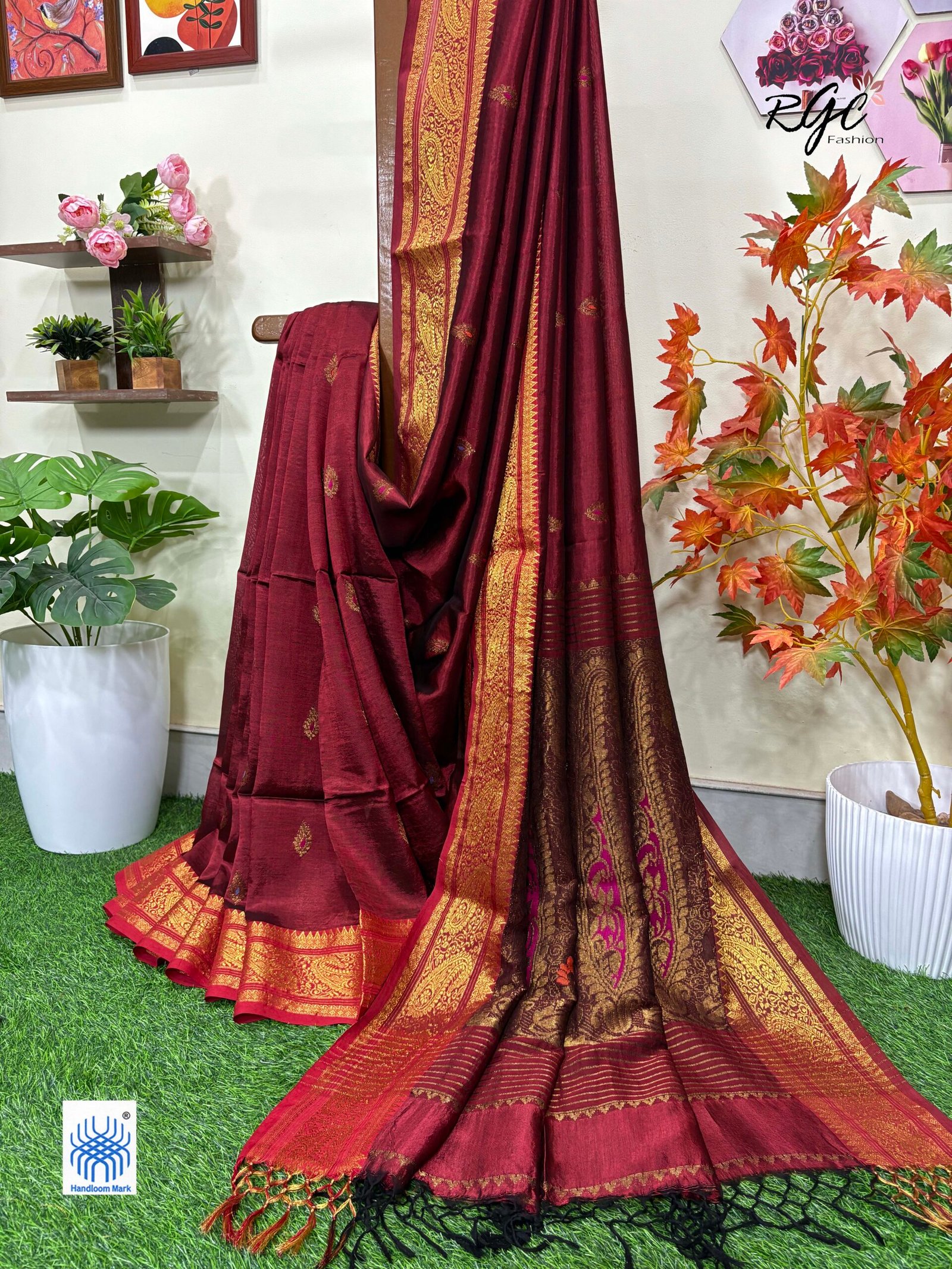 Maroon Paisley Bengal Handloom Katan Silk Bridal Saree