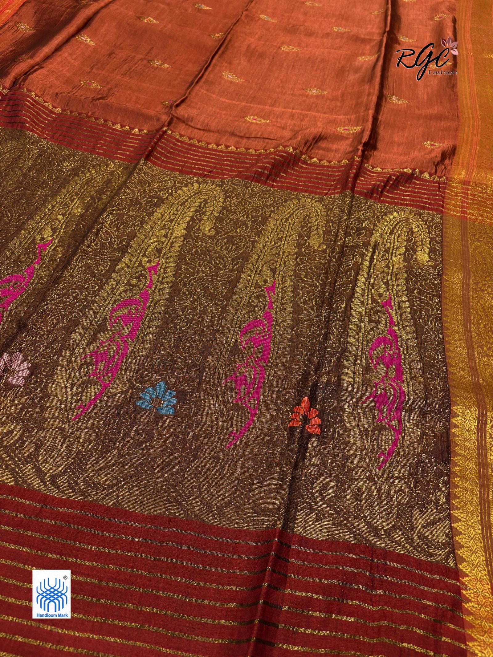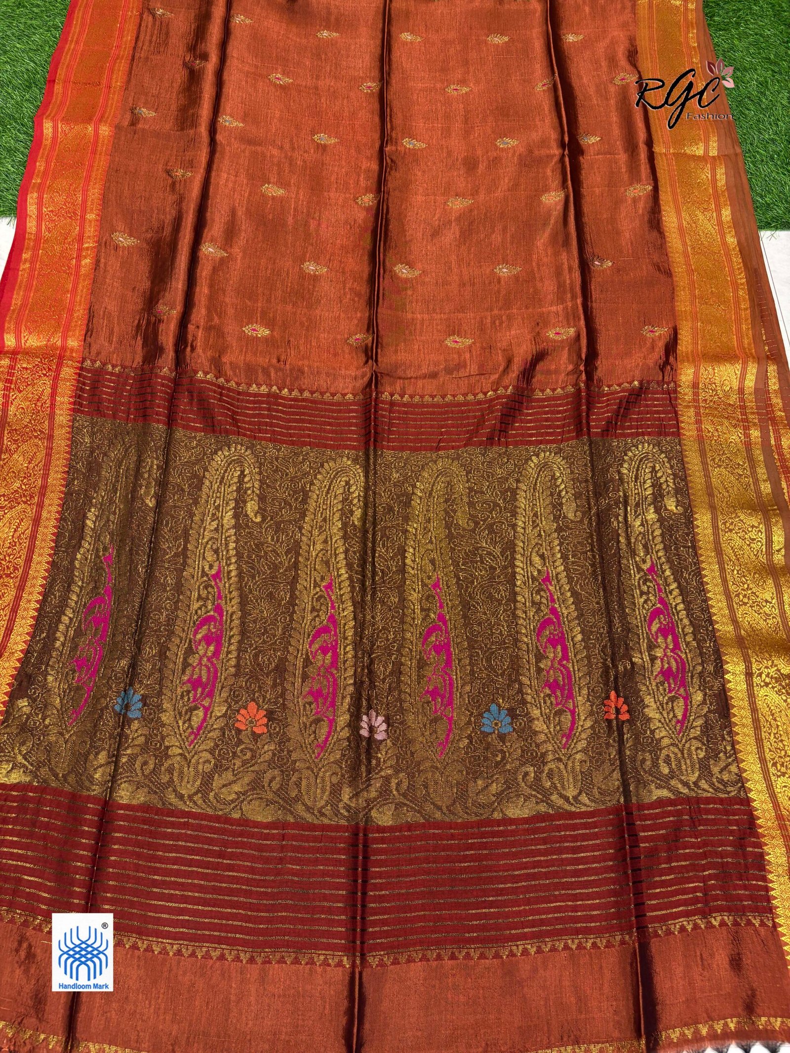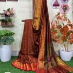 Rust Paisley Bengal Handloom Katan Silk Bridal Saree