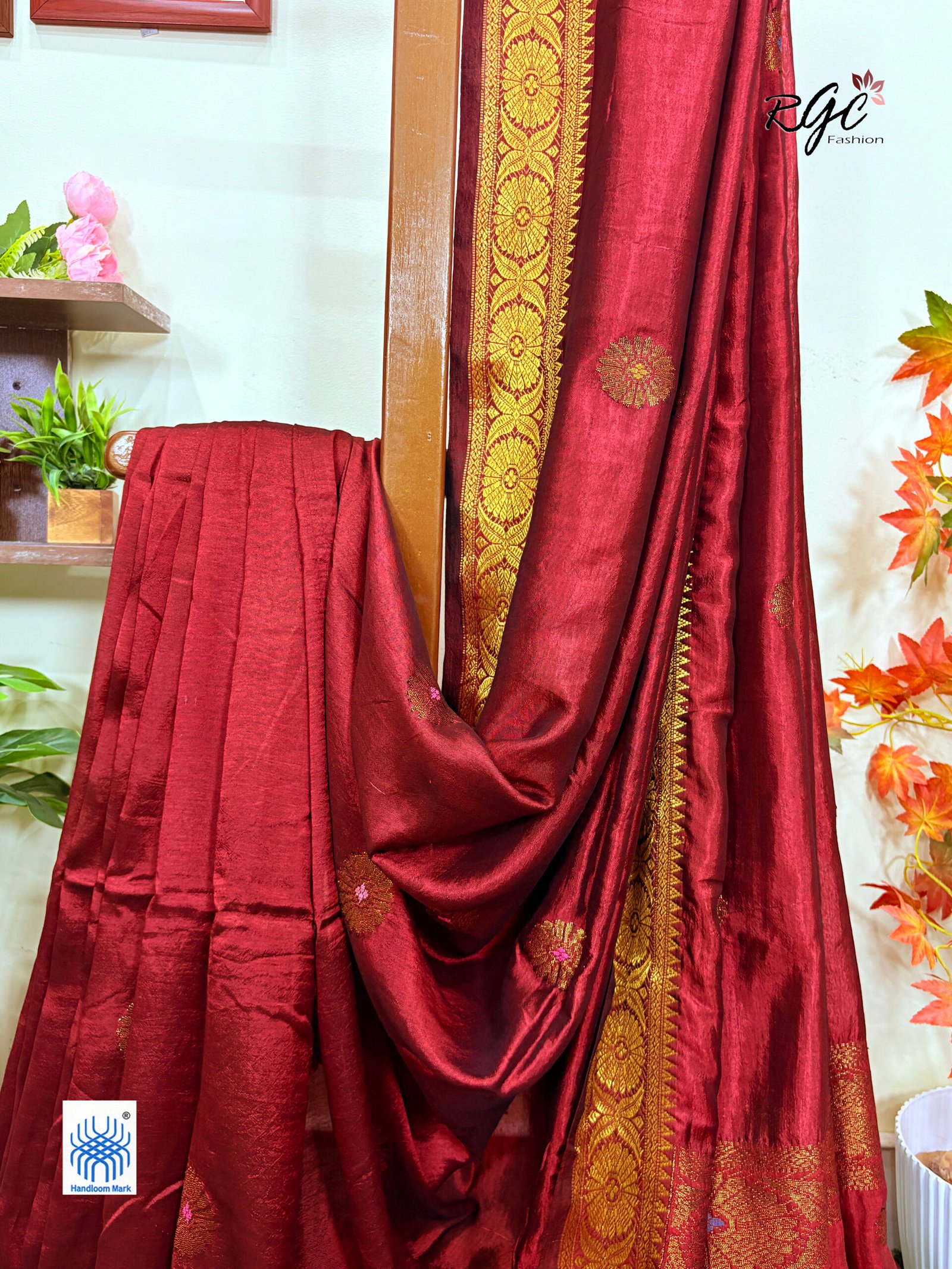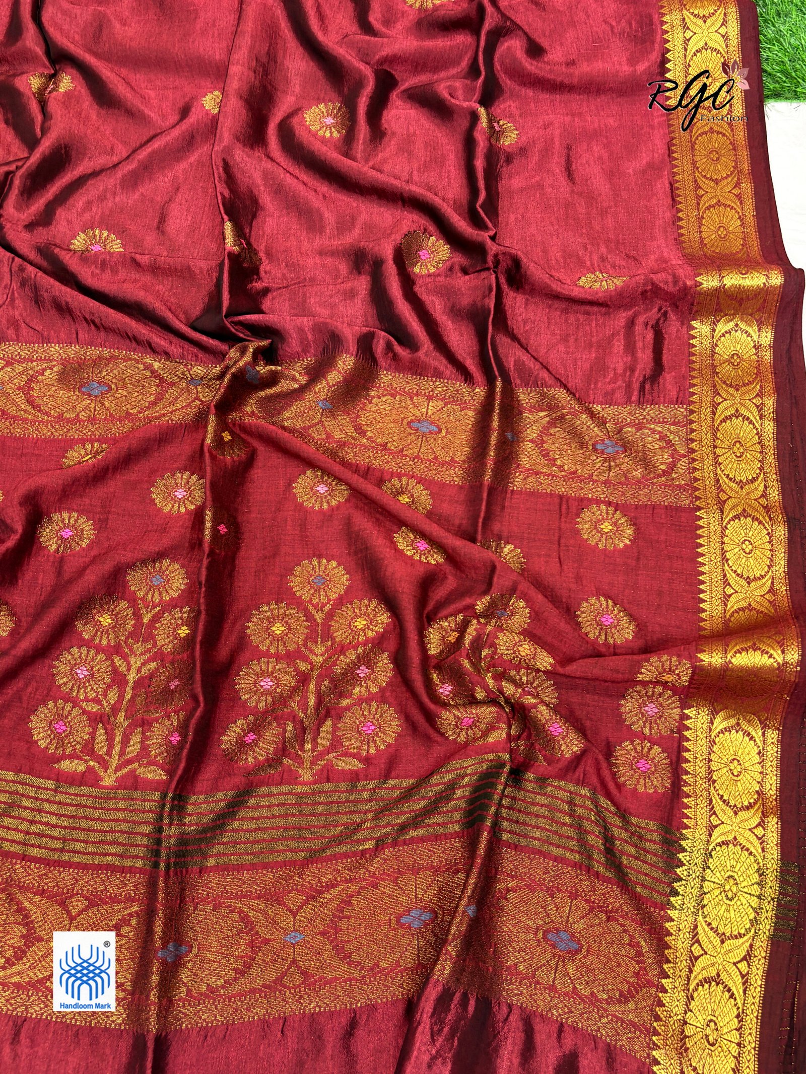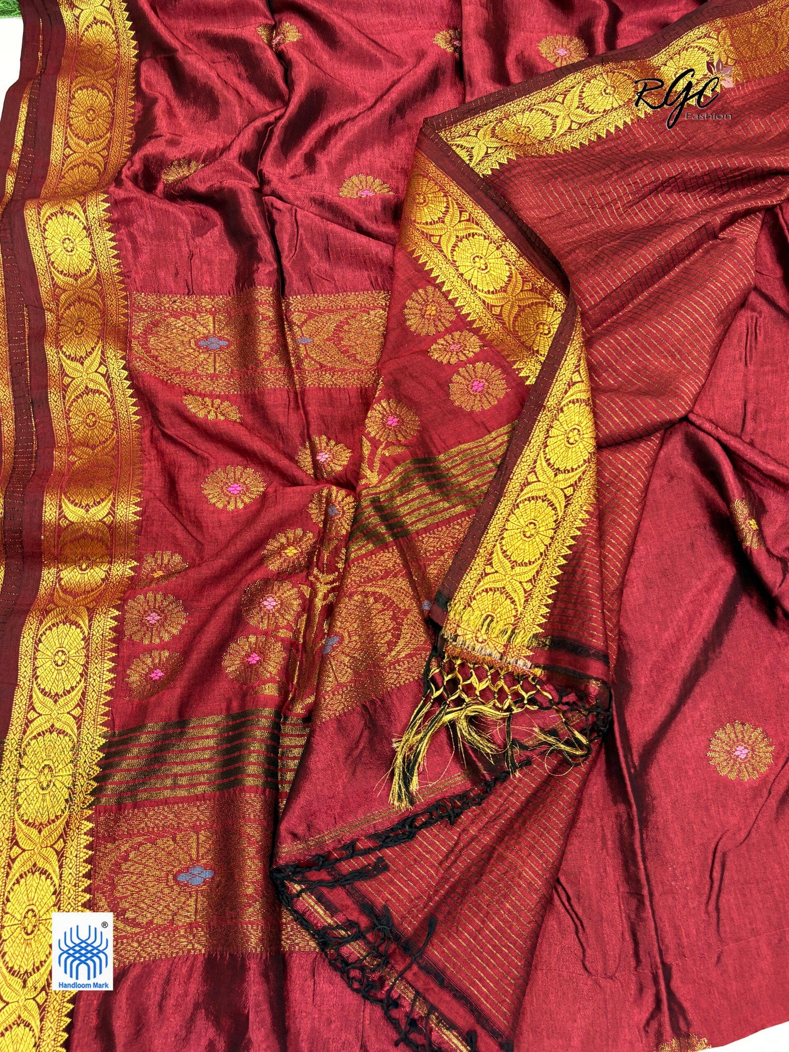 Maroon Bengal Handloom Katan Silk Benarasi Saree