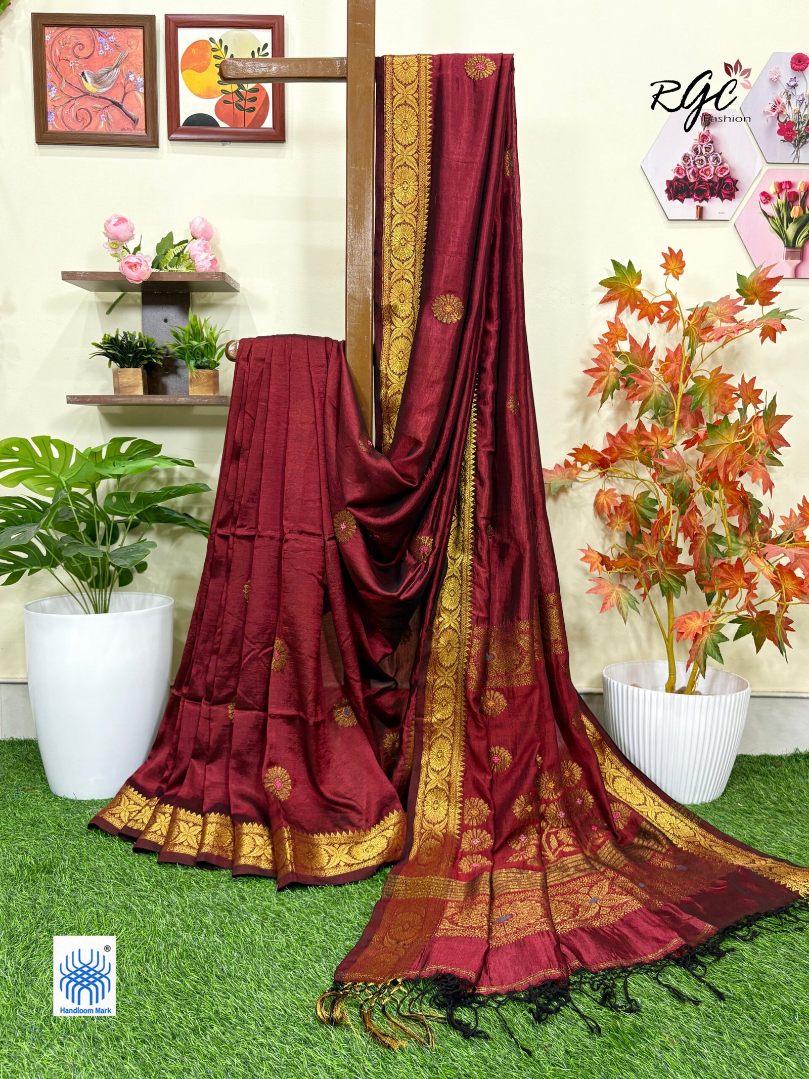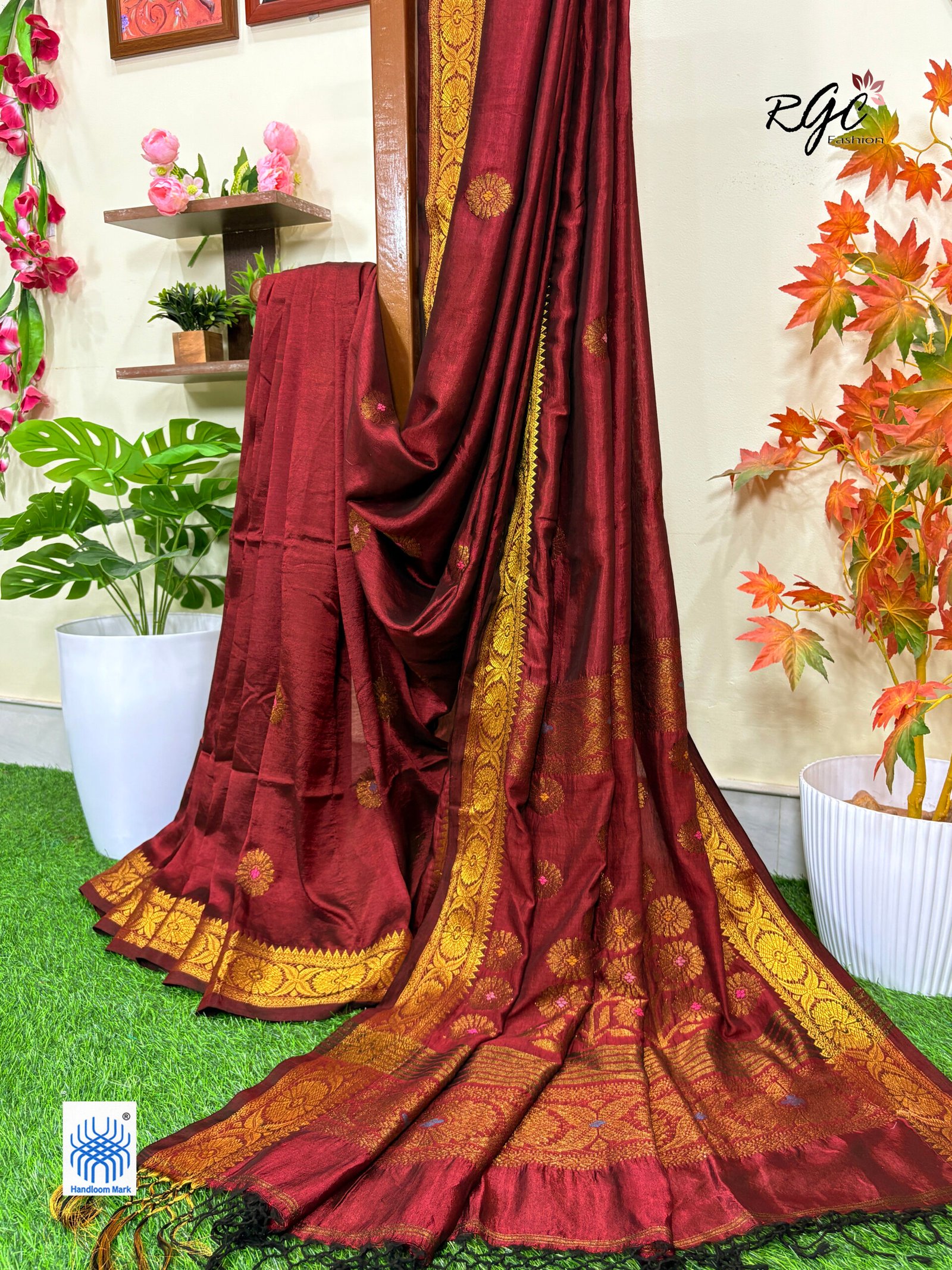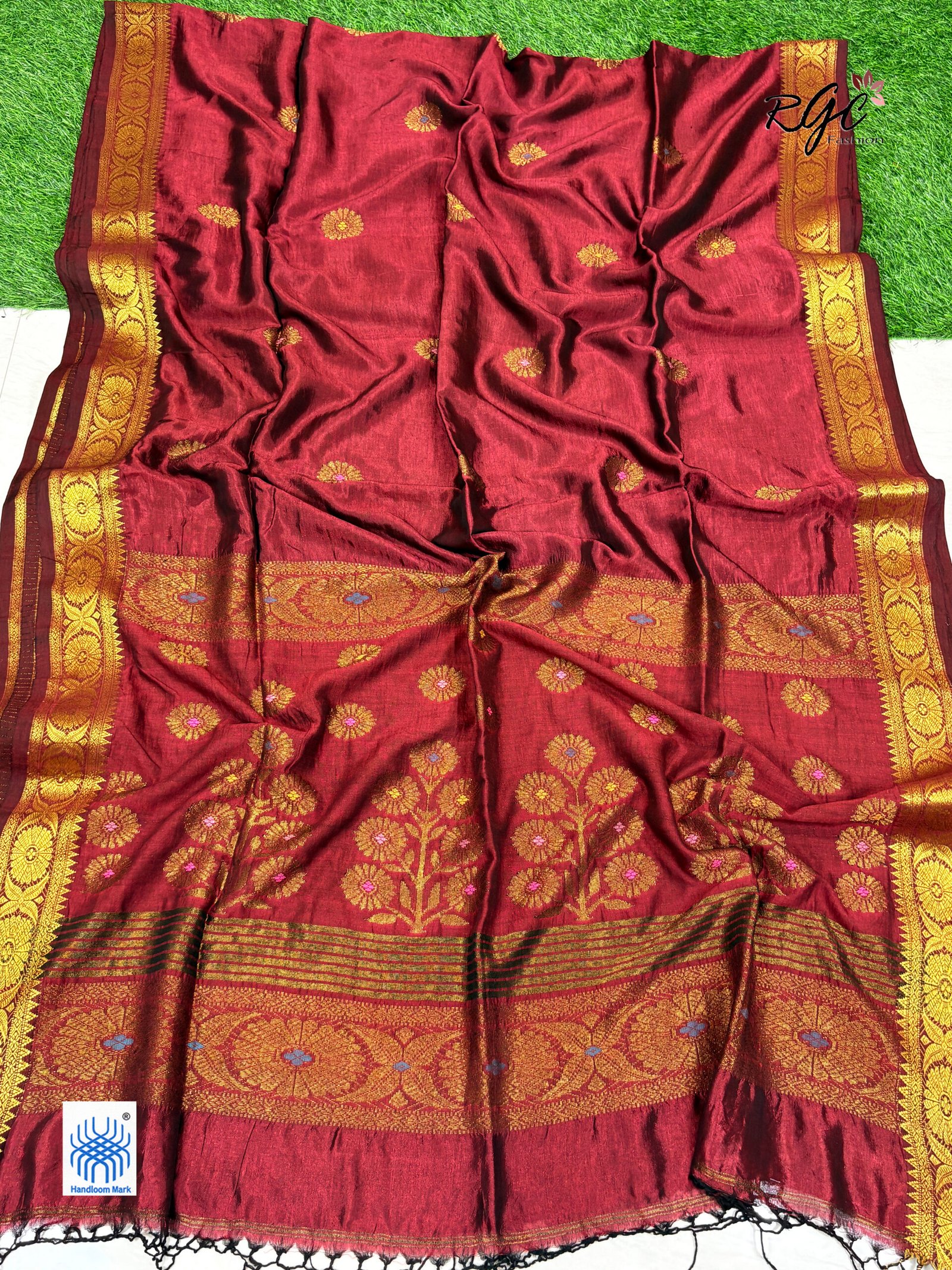 Maroon Bengal Handloom Katan Silk Benarasi Saree