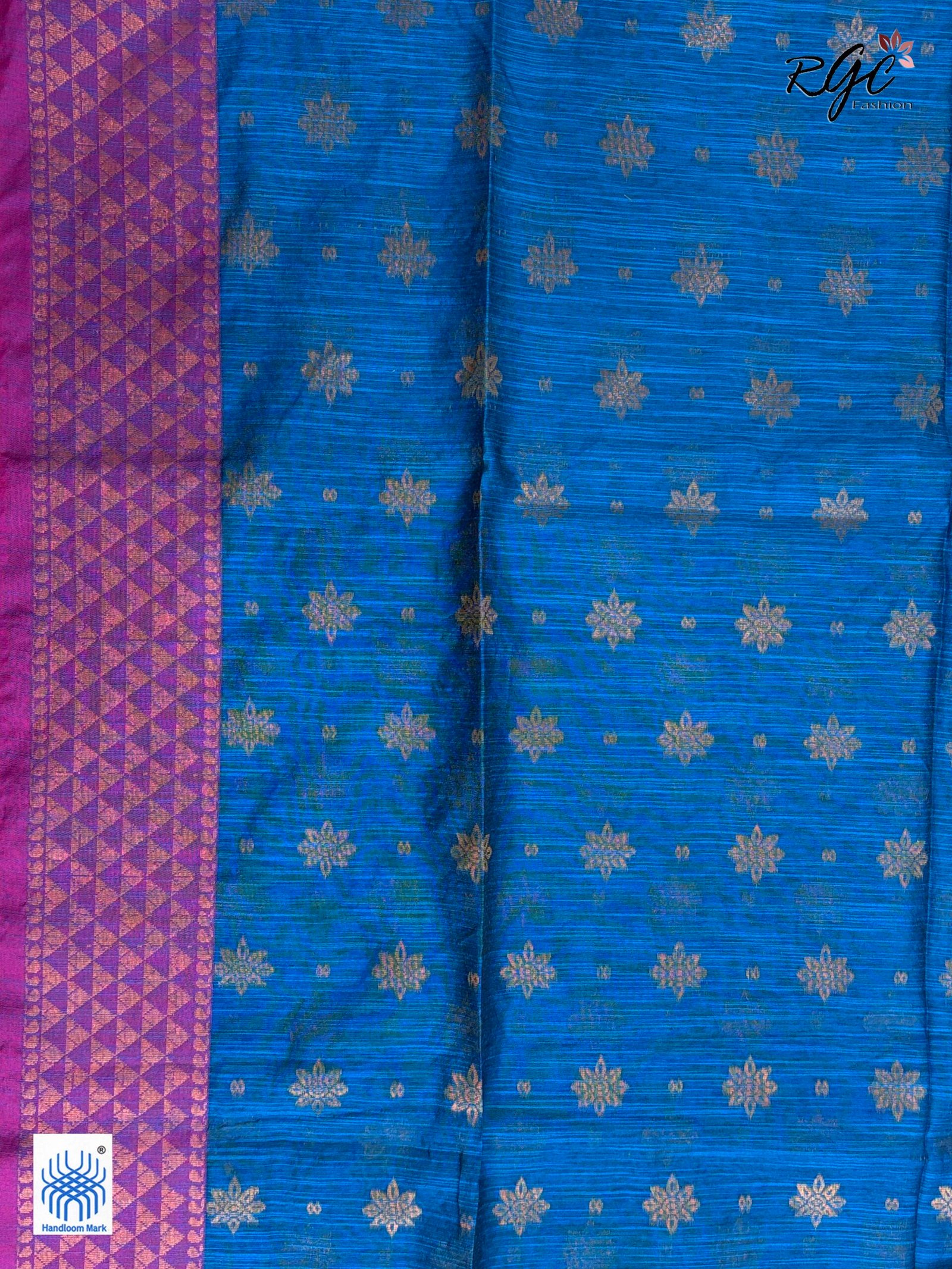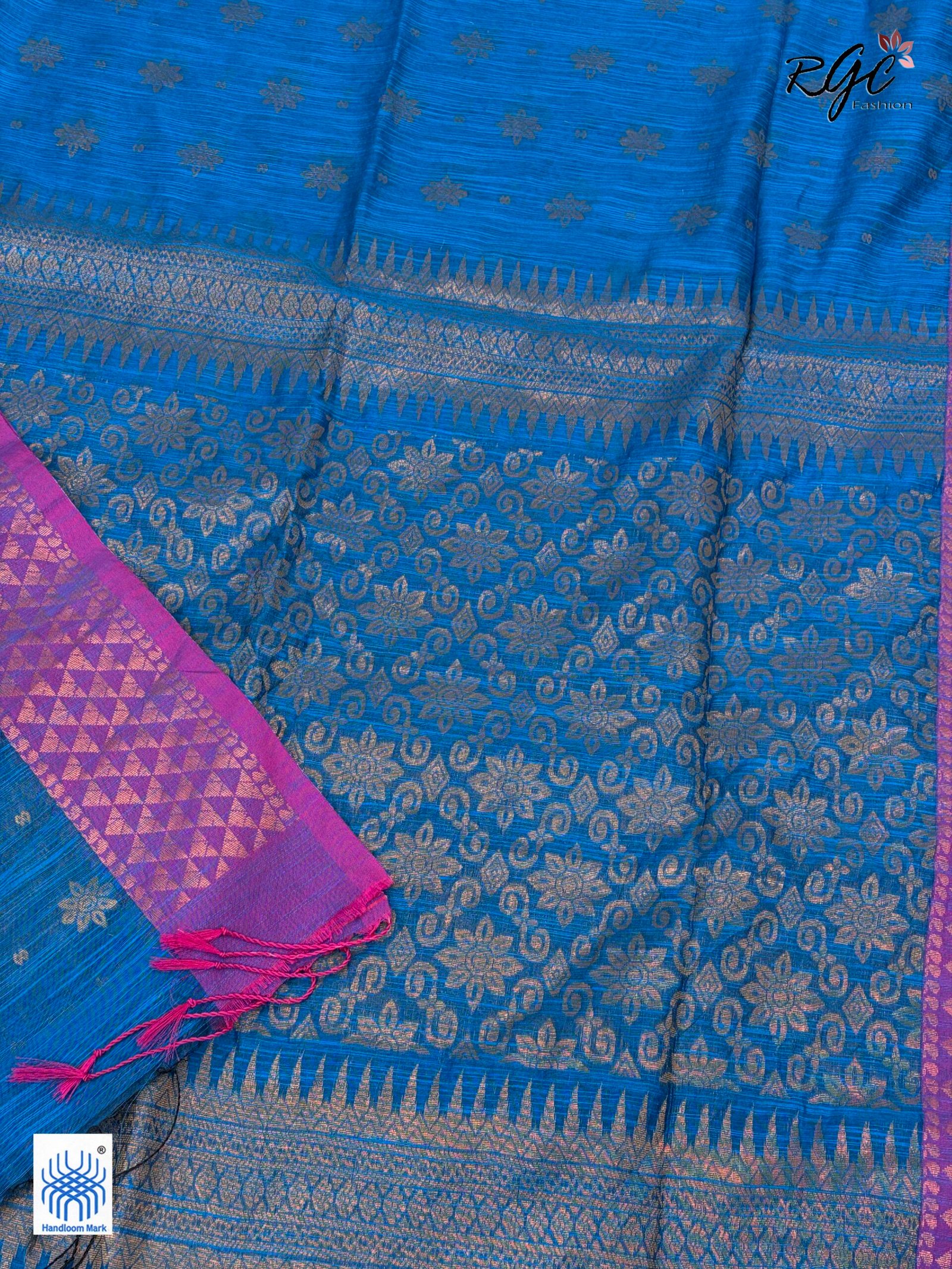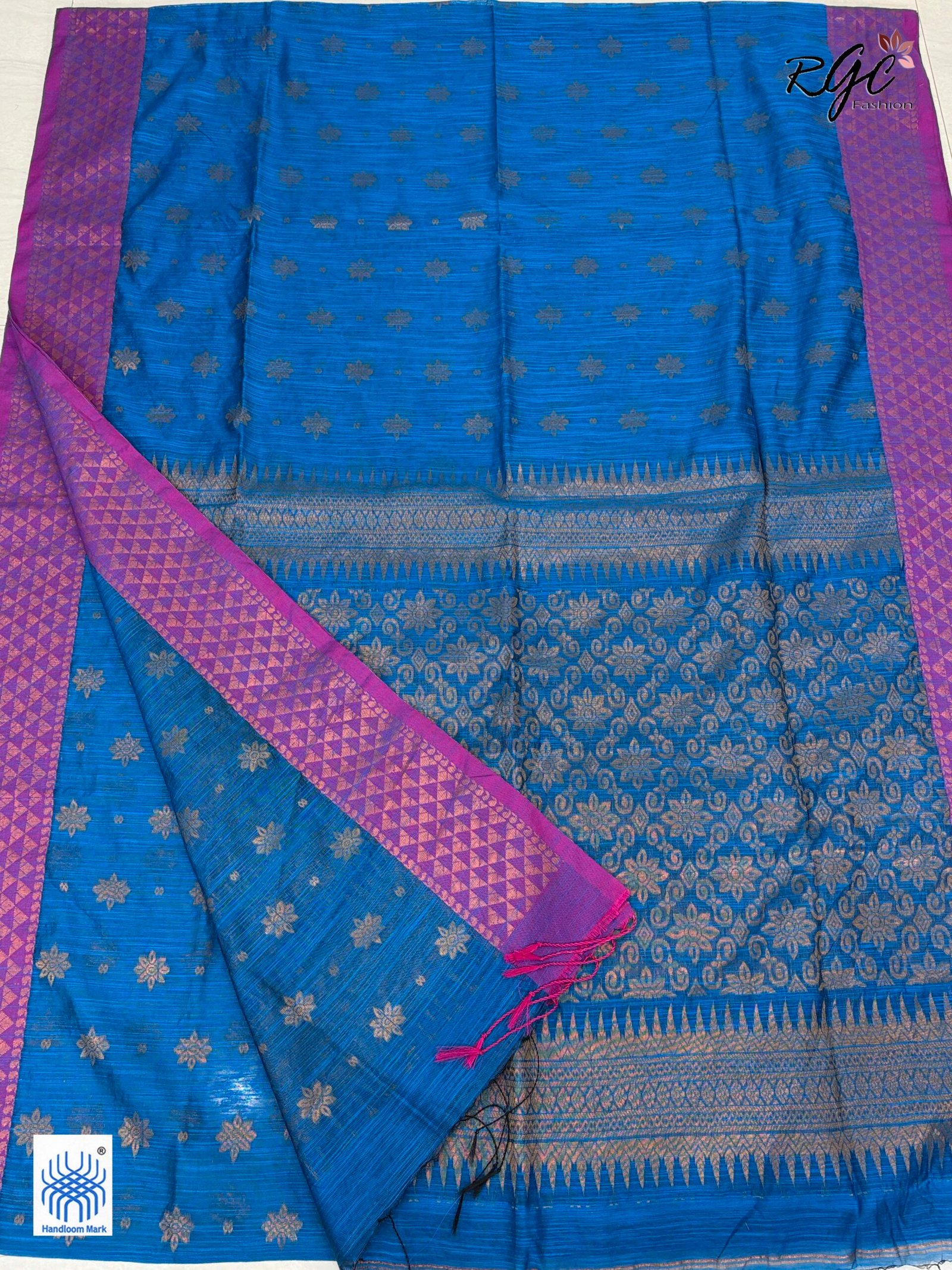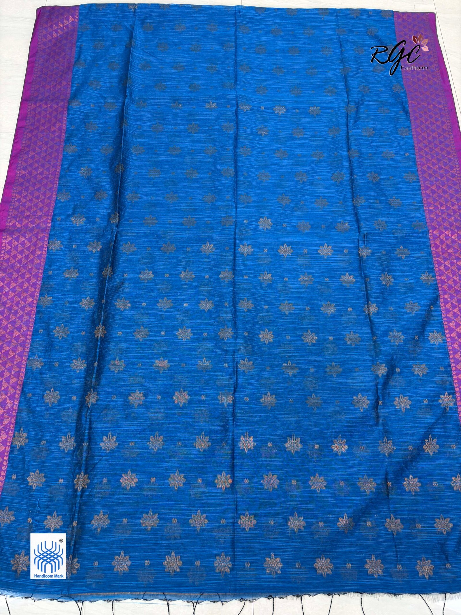 Cyan-Blue Handloom Cotton Silk Benarasi Saree
