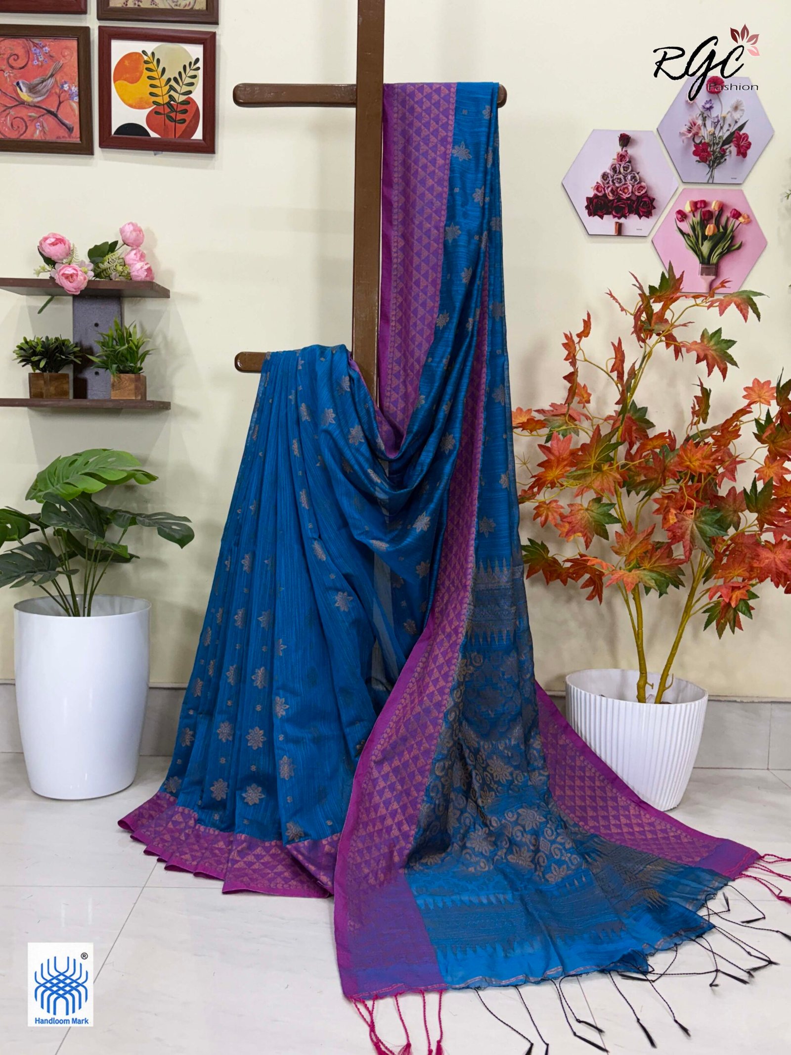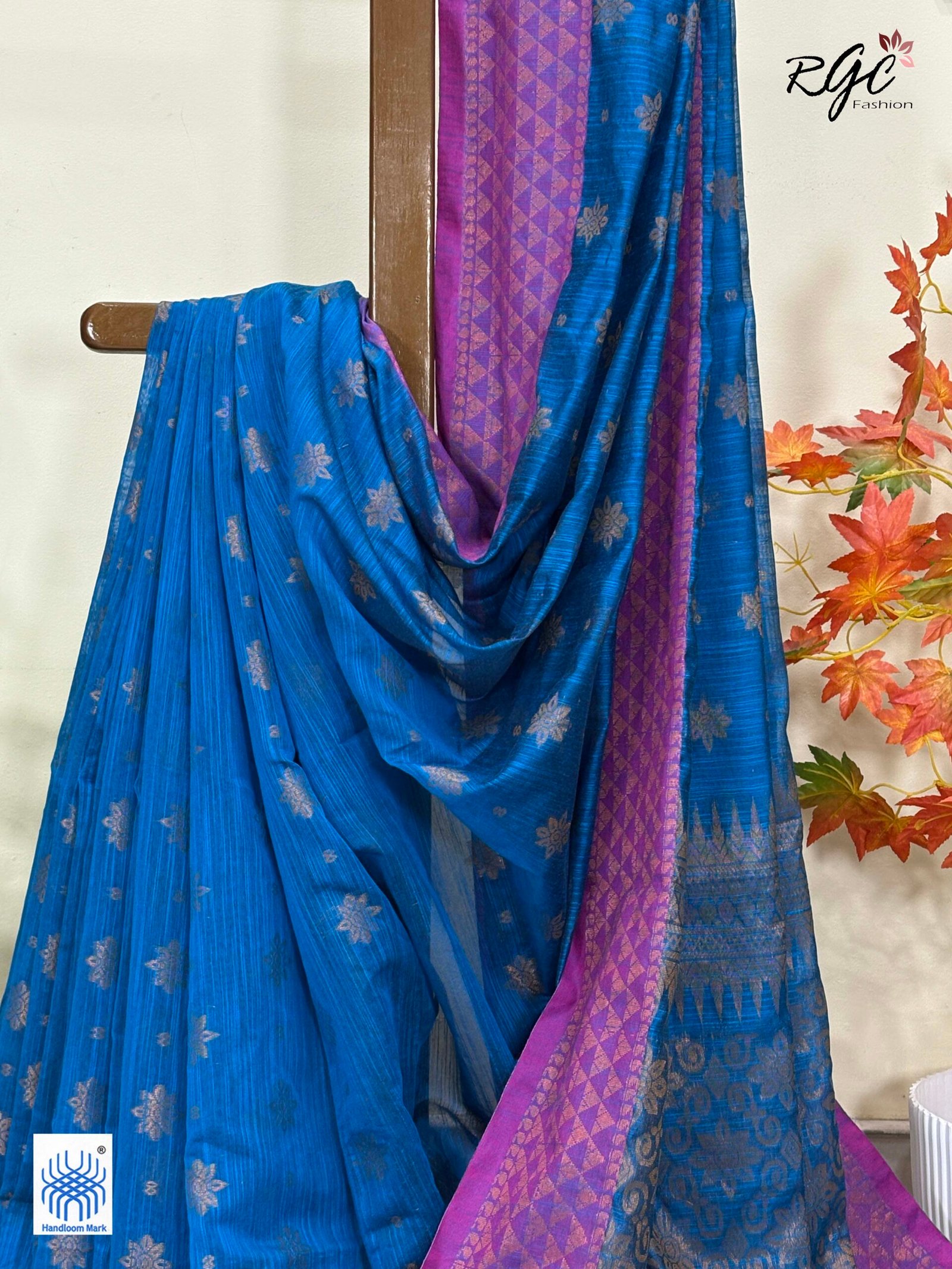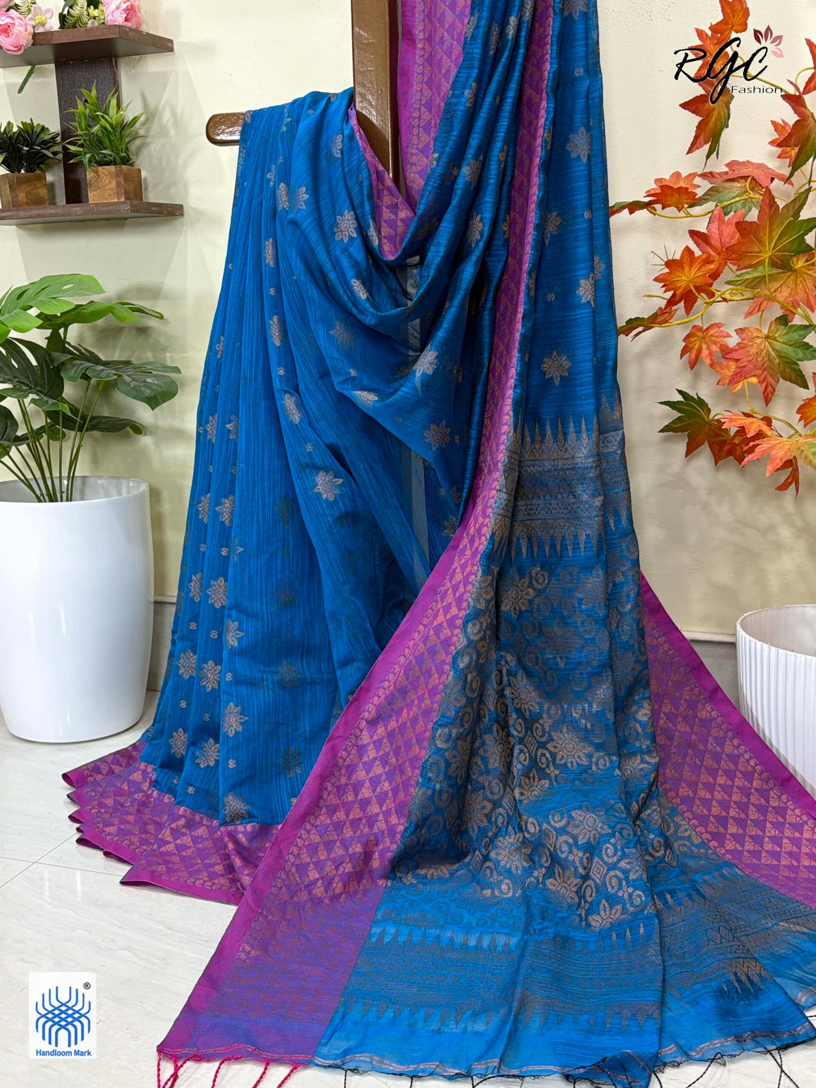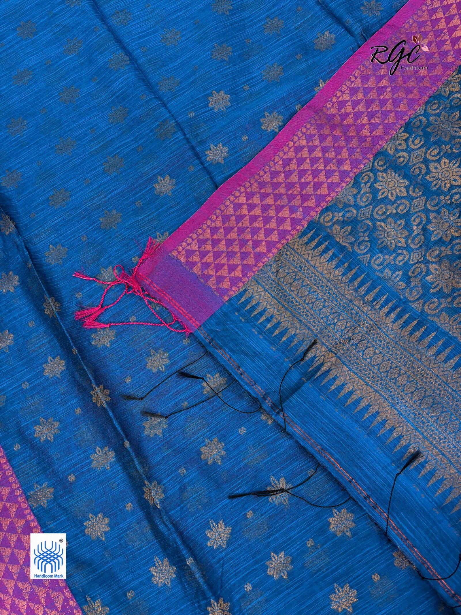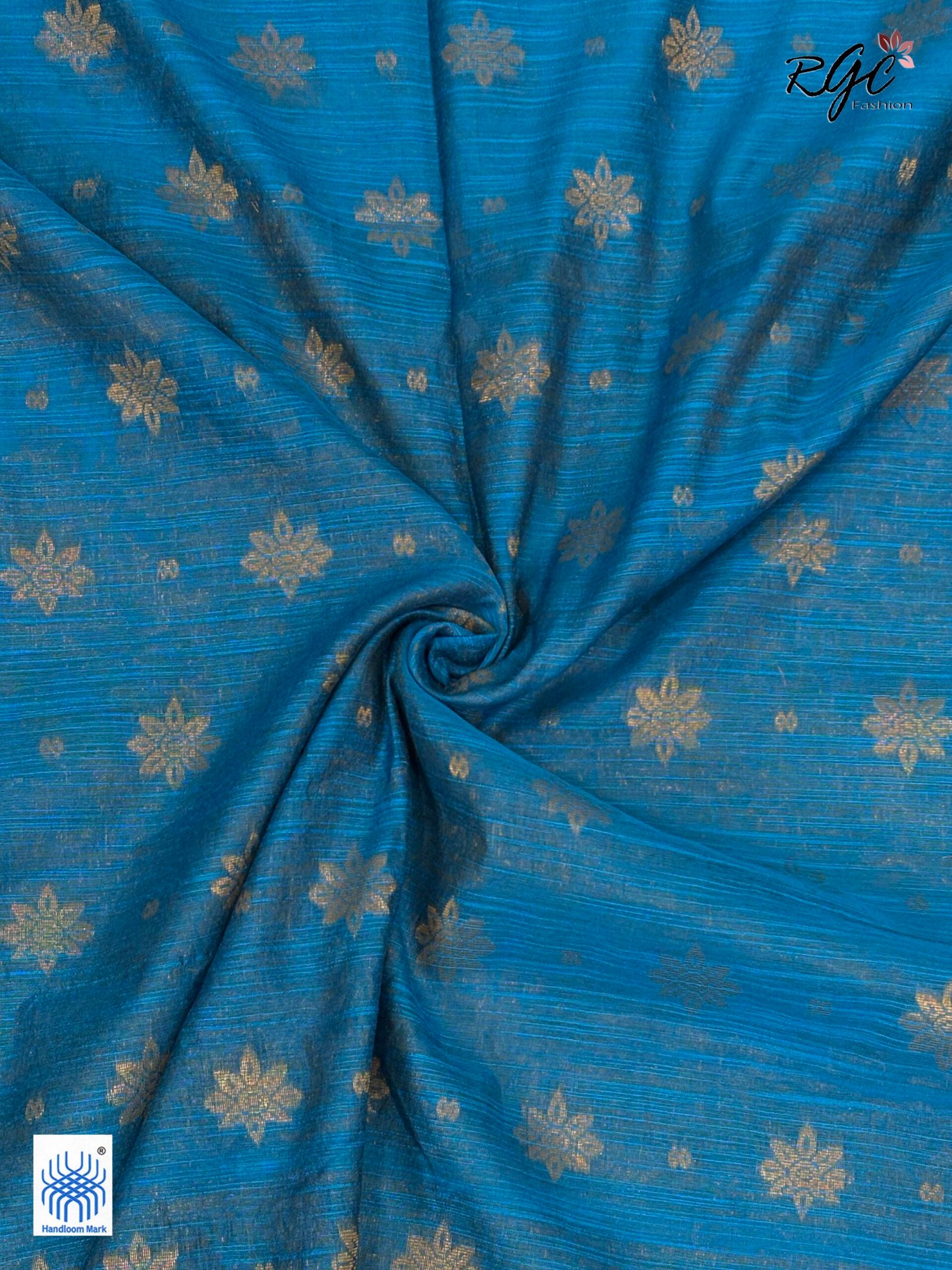 Deep Aqua Handloom Cotton Silk Benarasi Saree