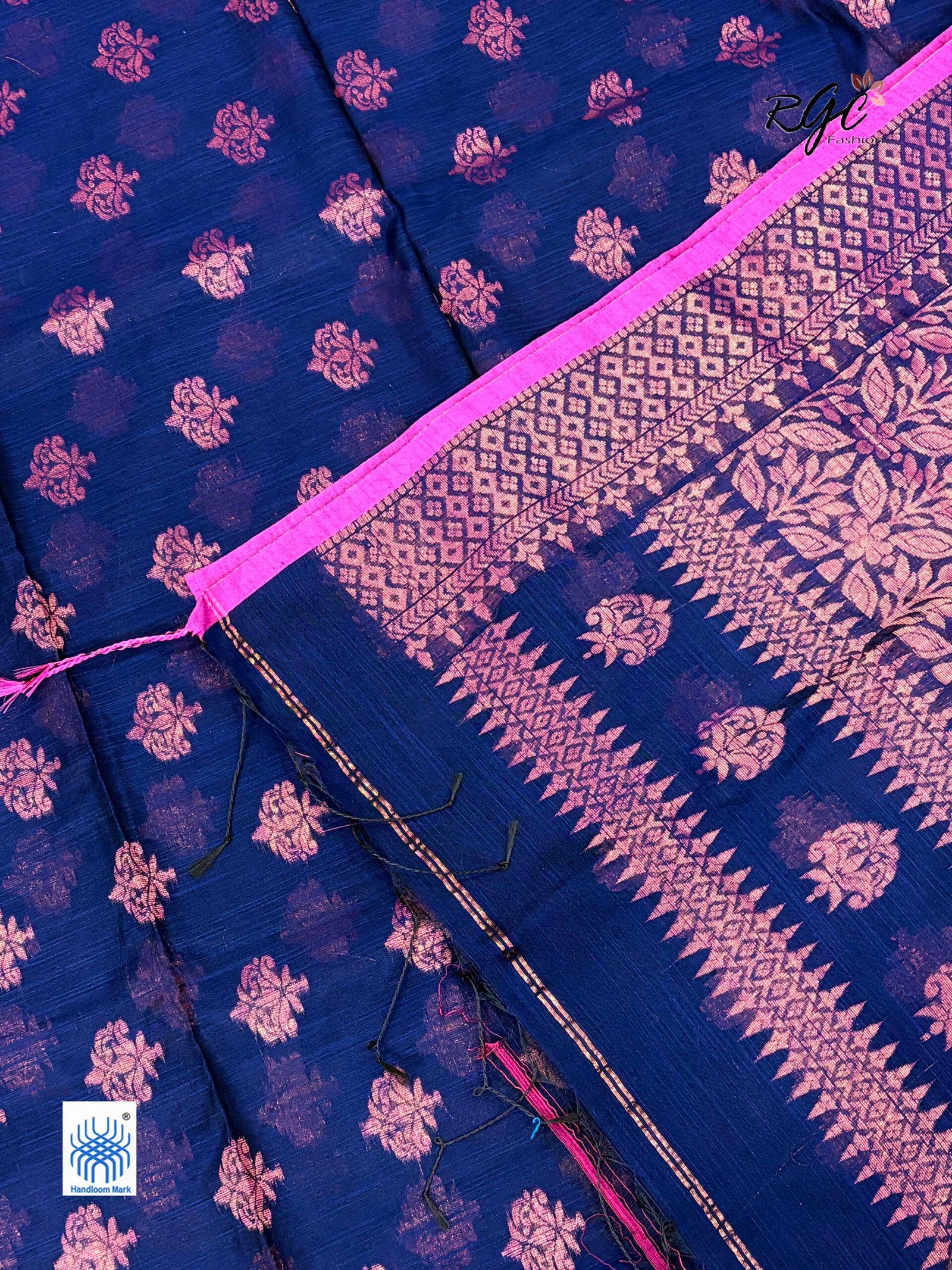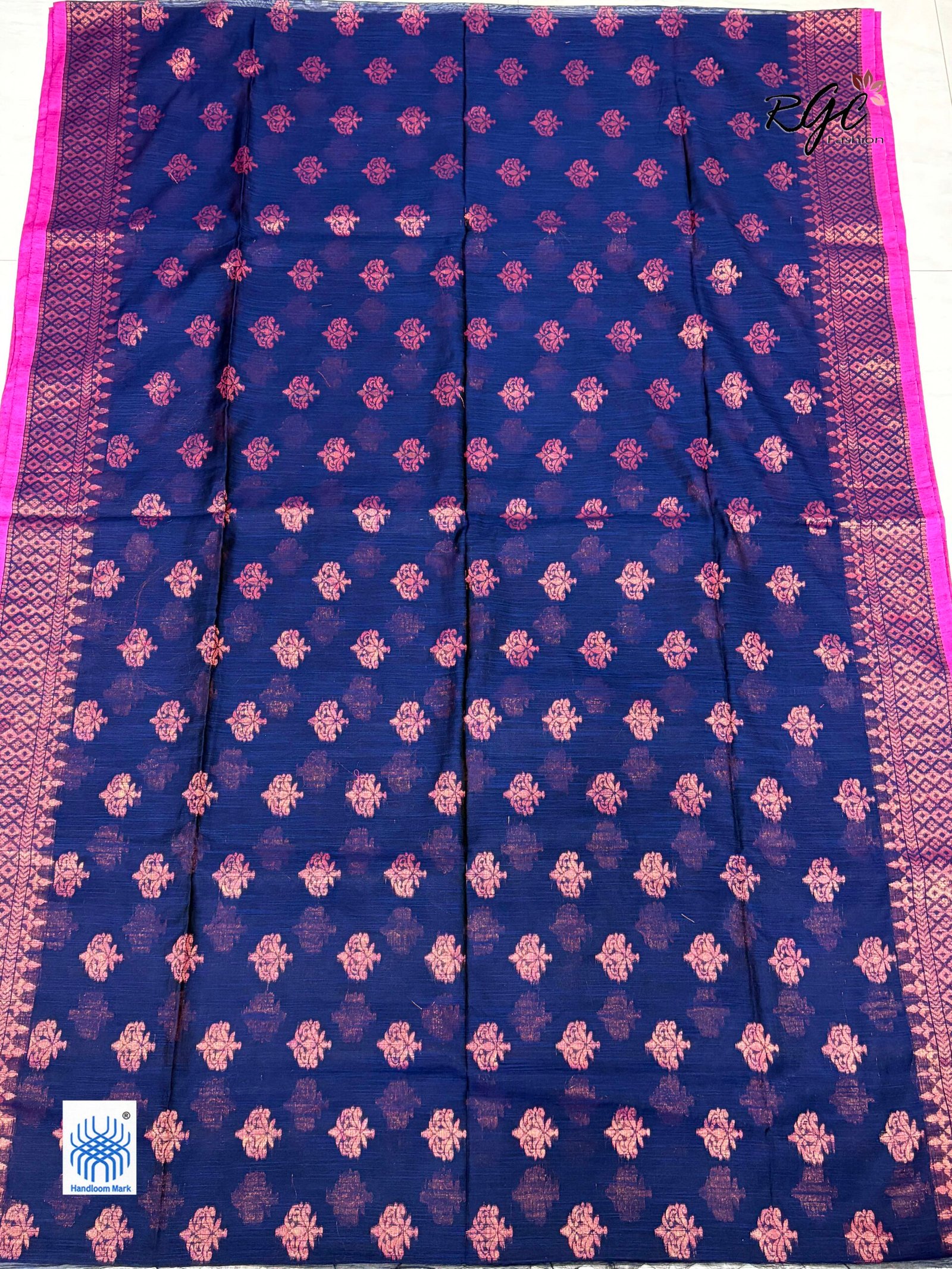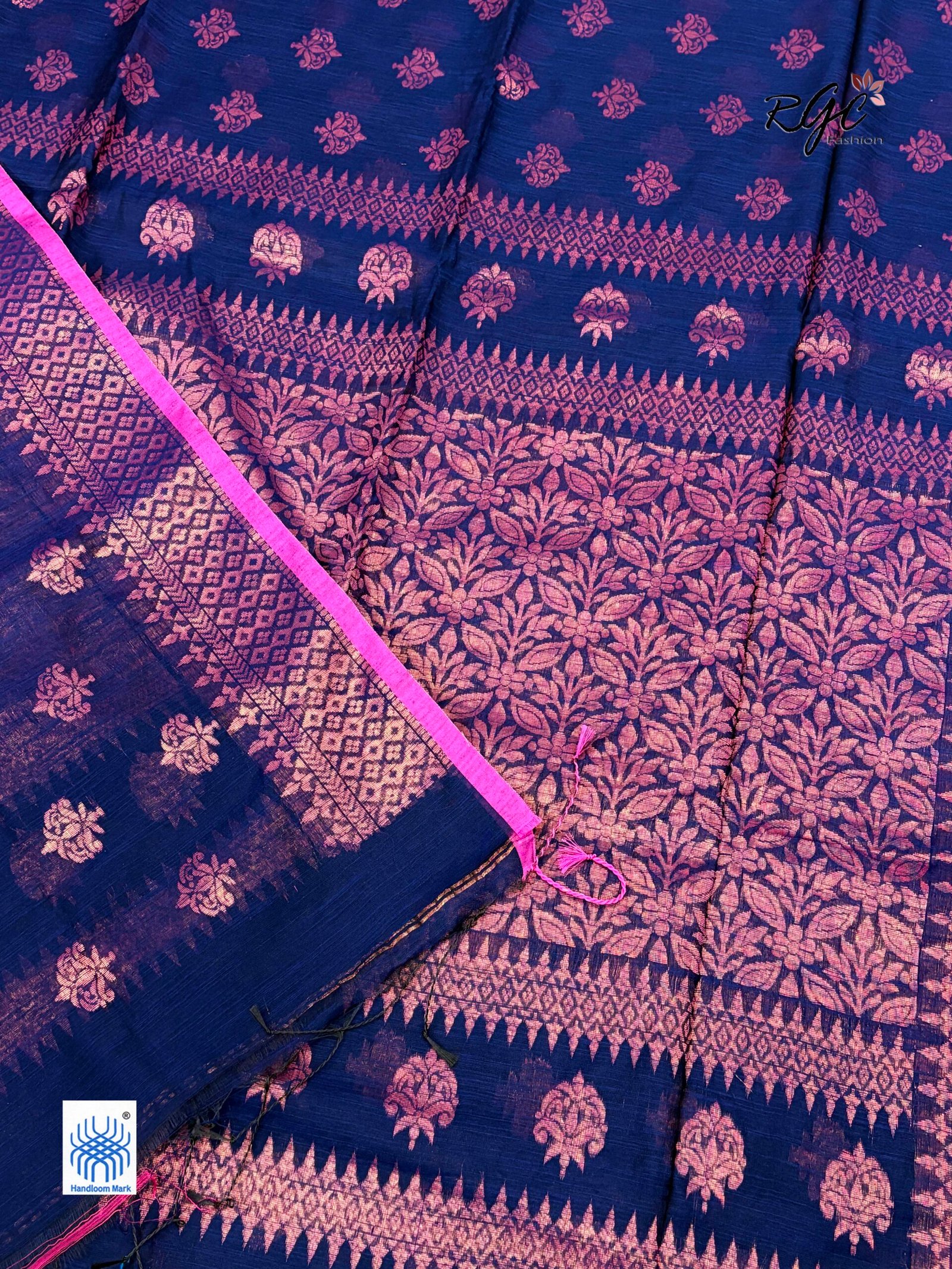 Navy Blue Handloom Cotton Silk Benarasi Saree