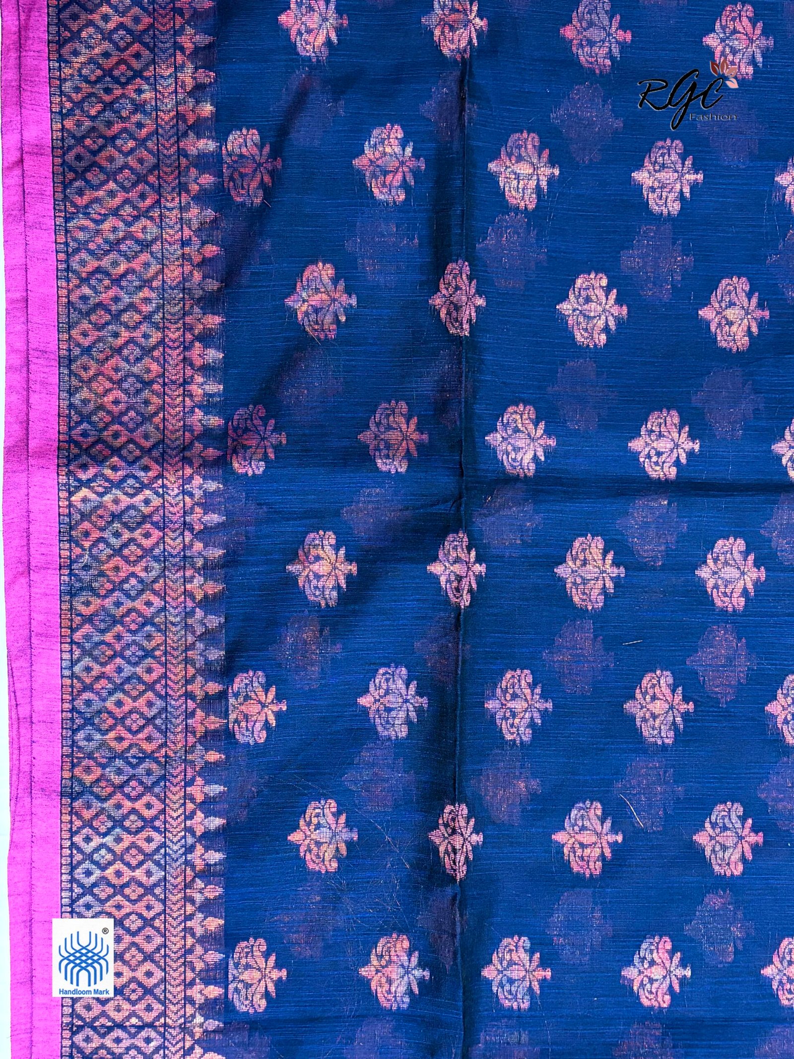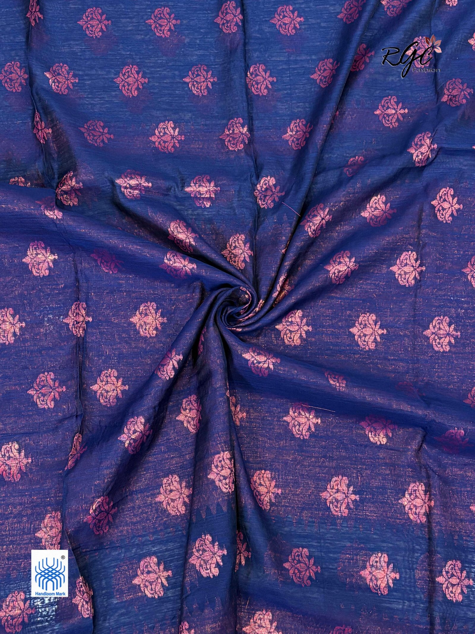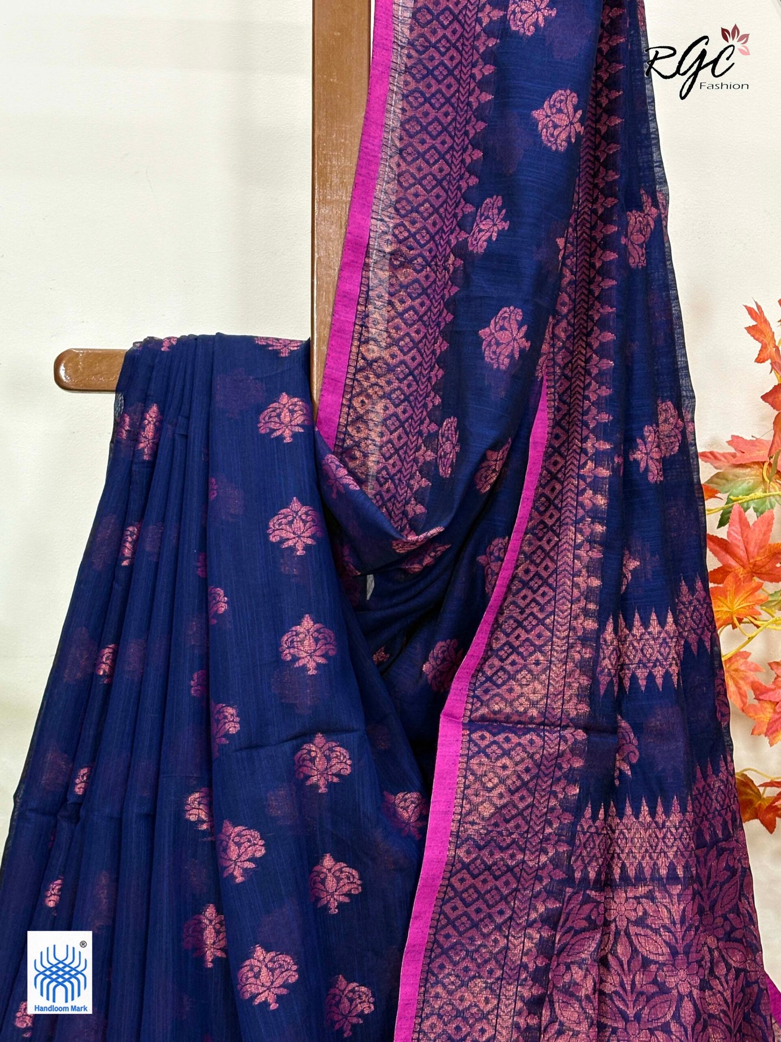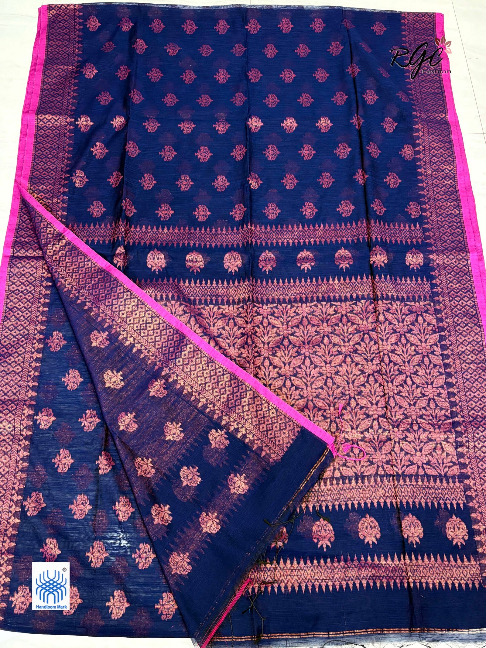 Navy Blue Handloom Cotton Silk Benarasi Saree