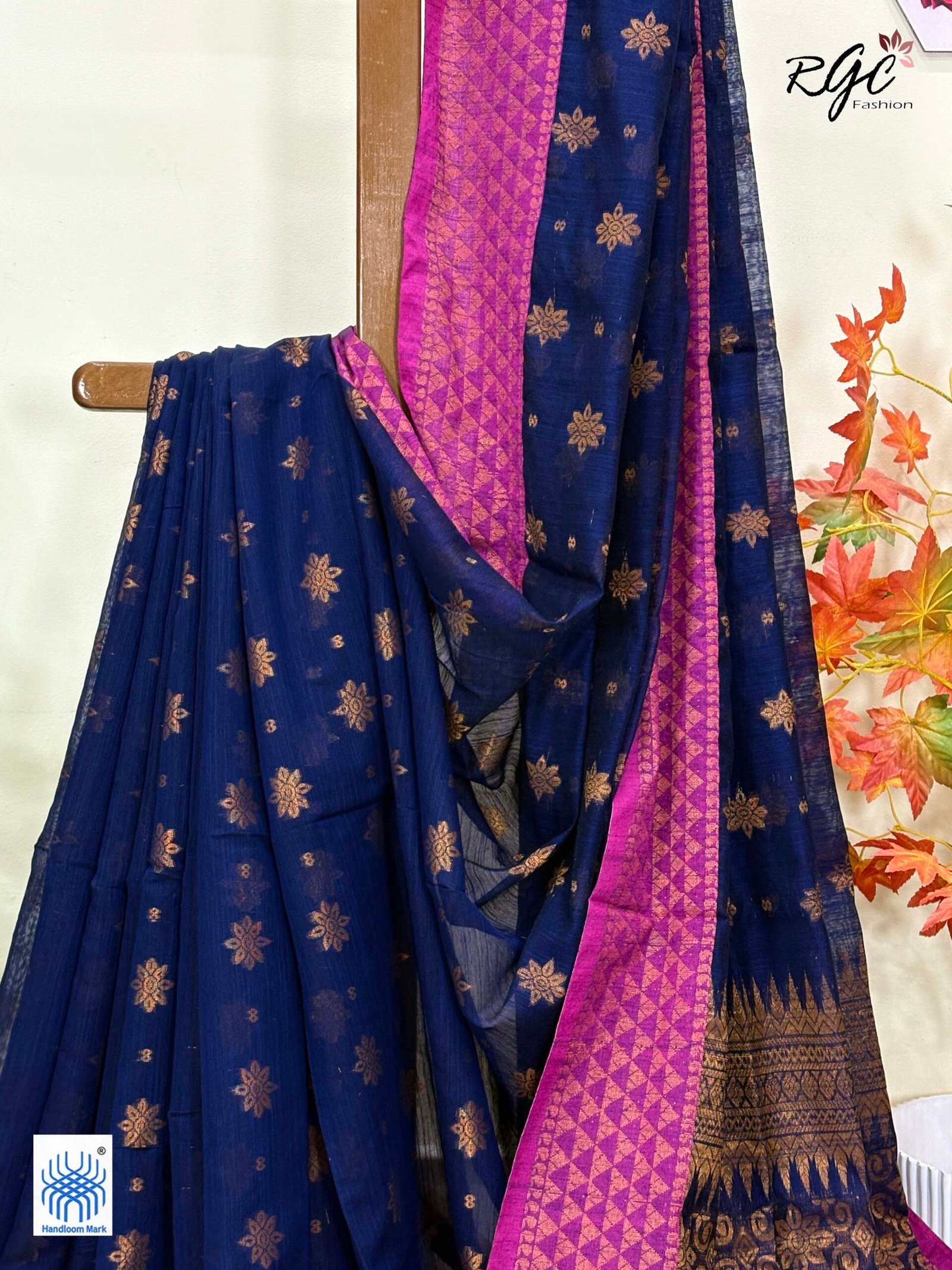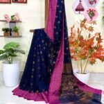 Navy Blue Handloom Cotton Silk Benarasi Saree