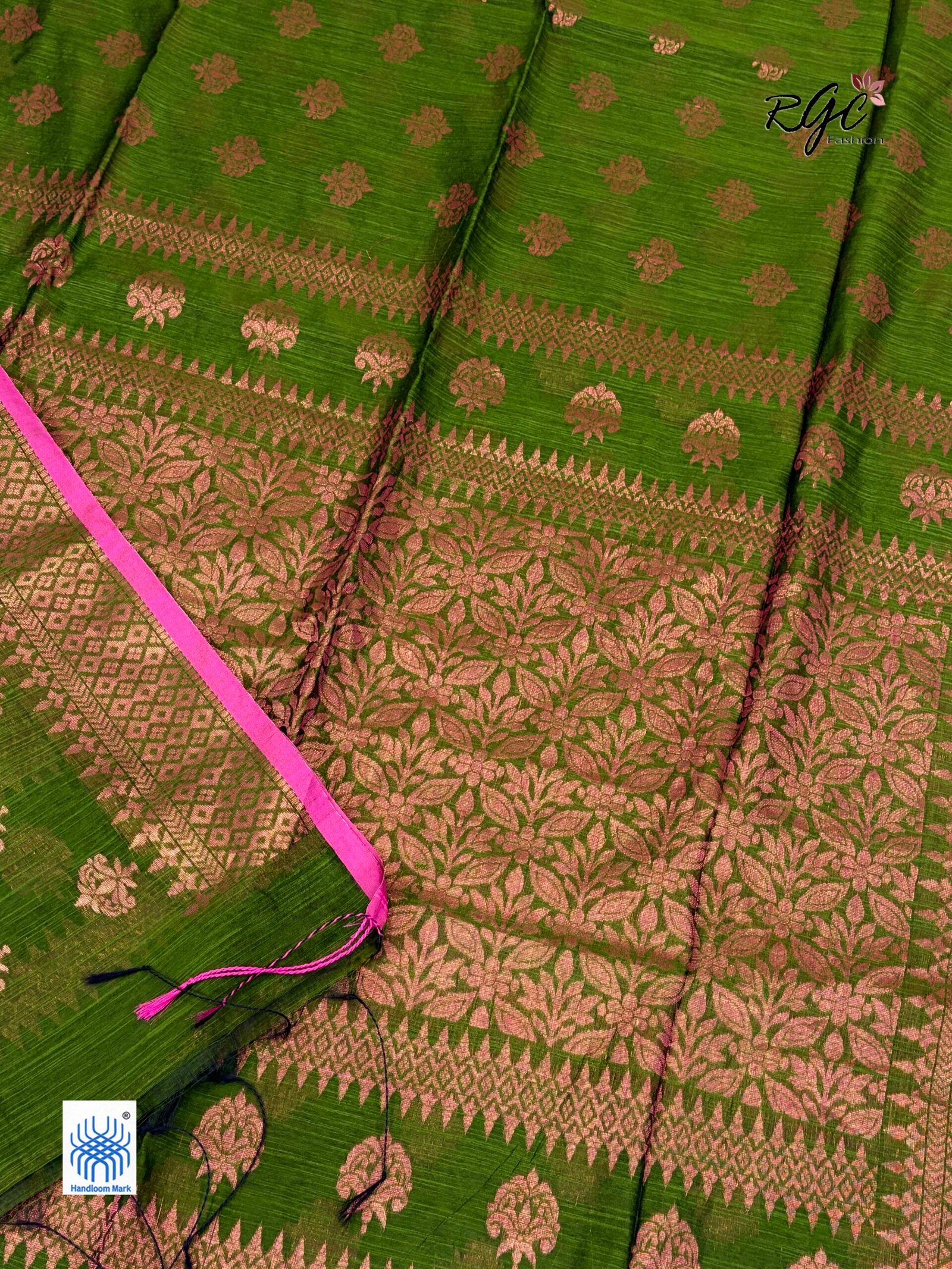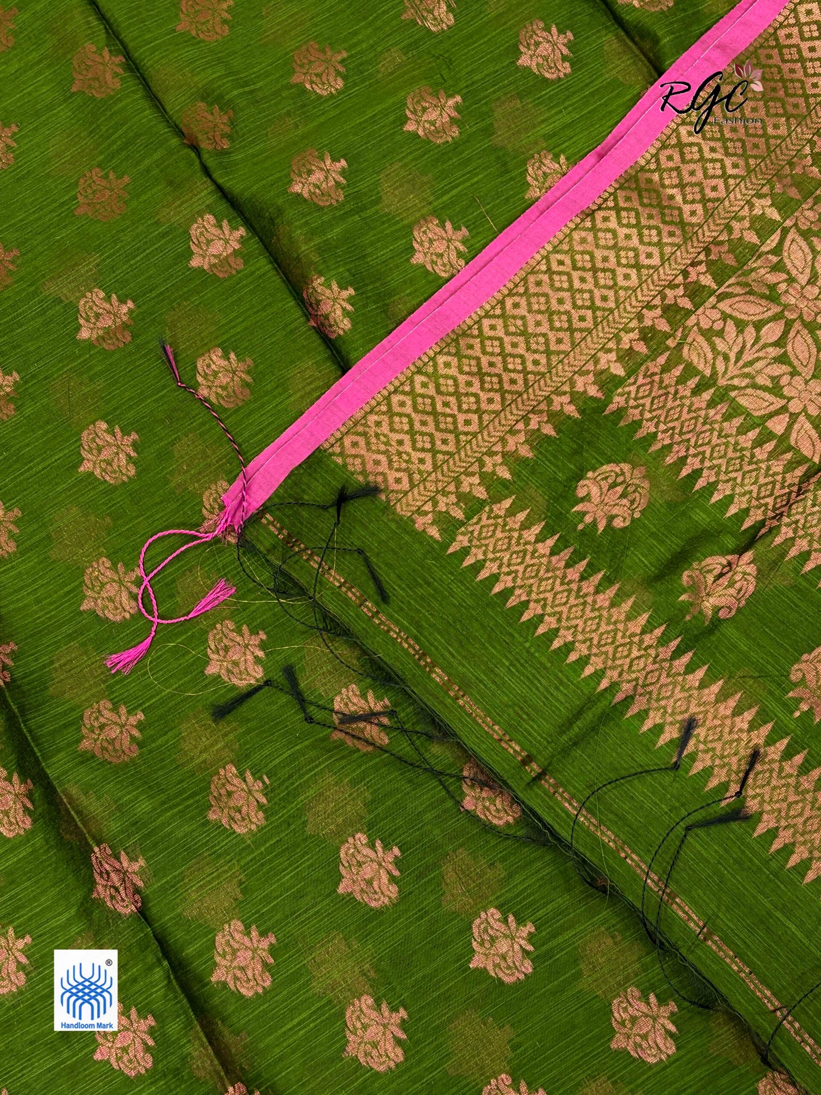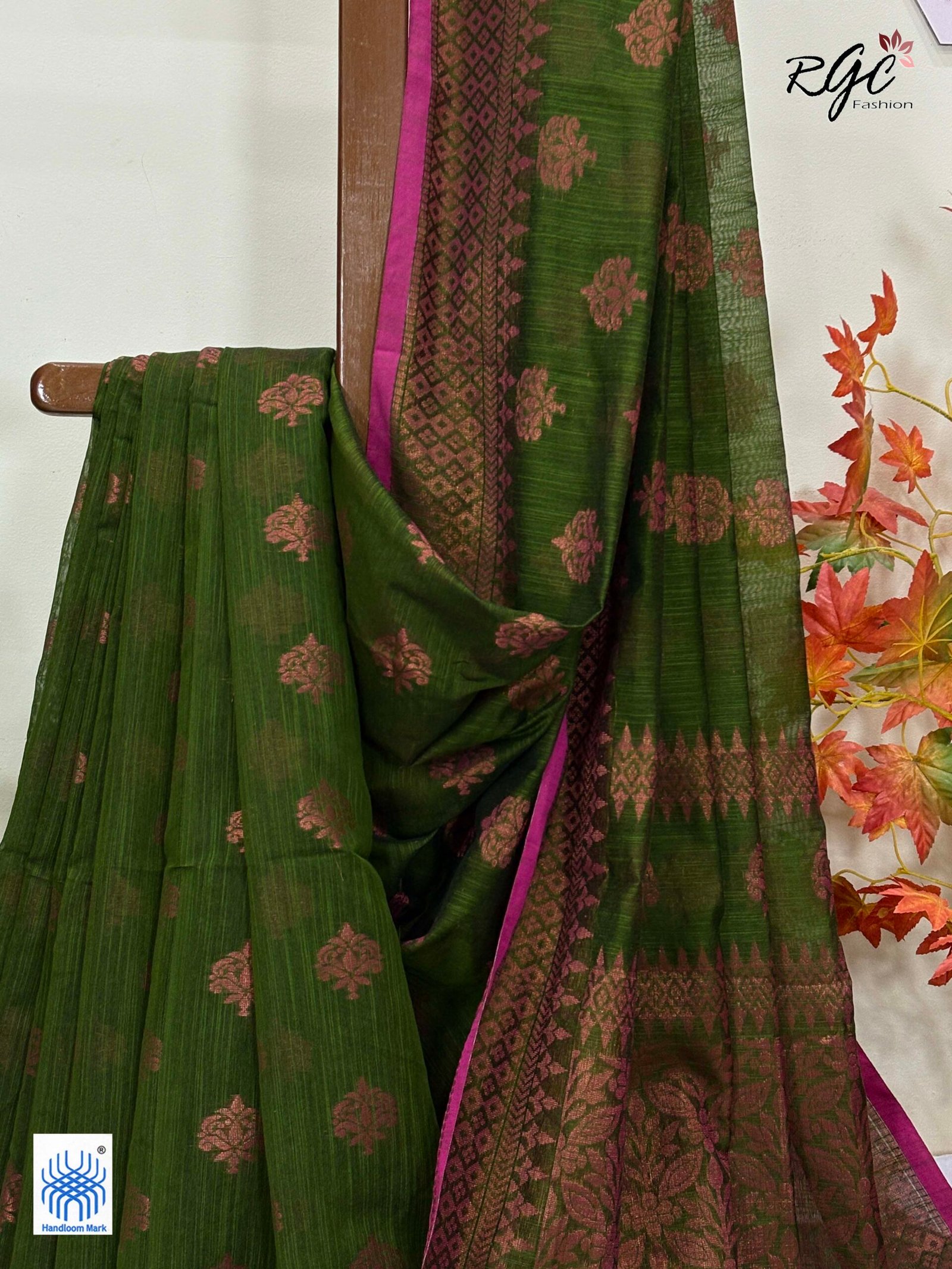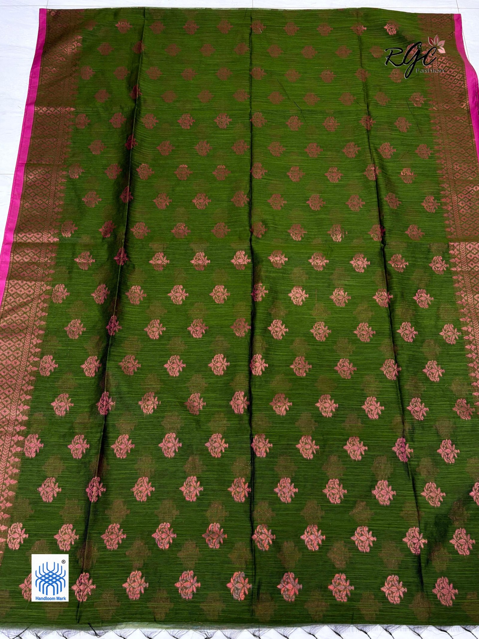 Olive Green Handloom Cotton Silk Benarasi Saree