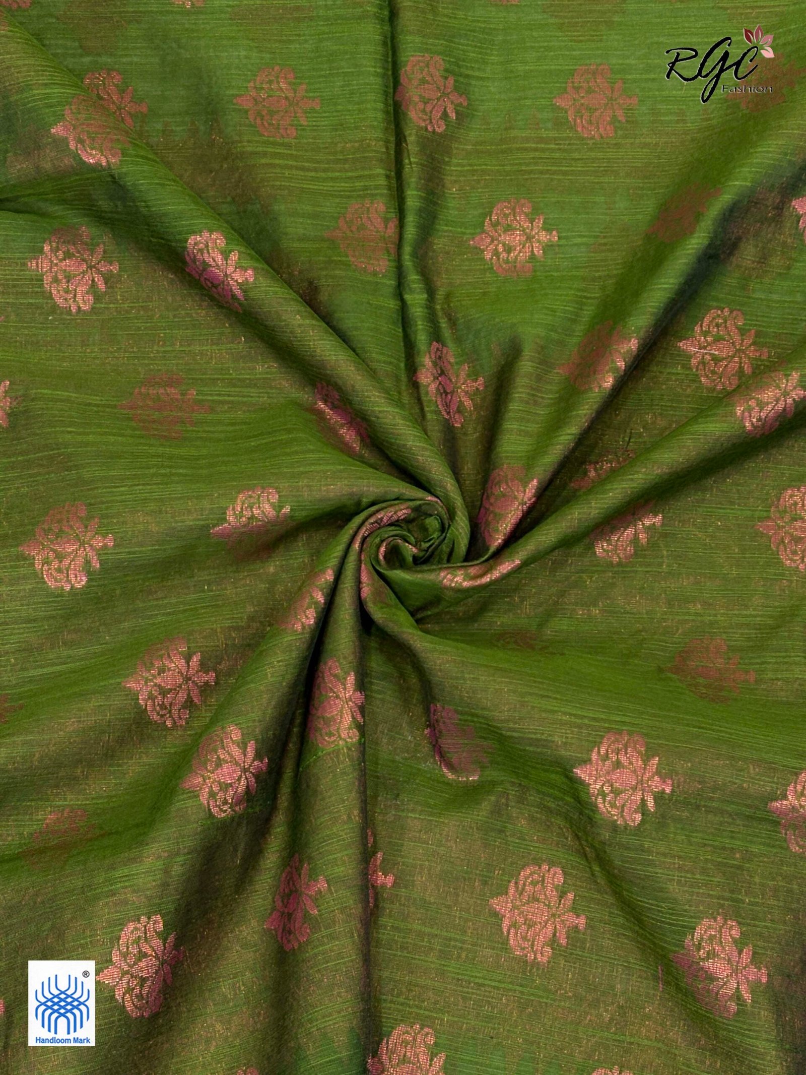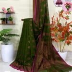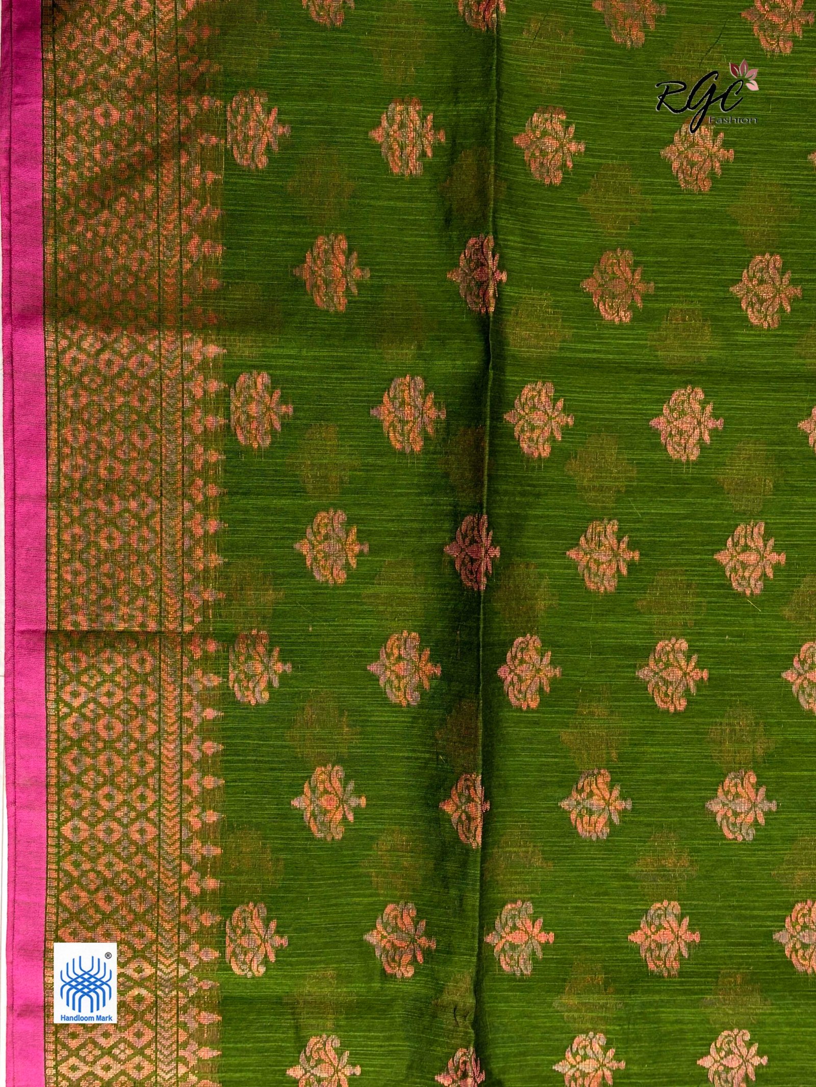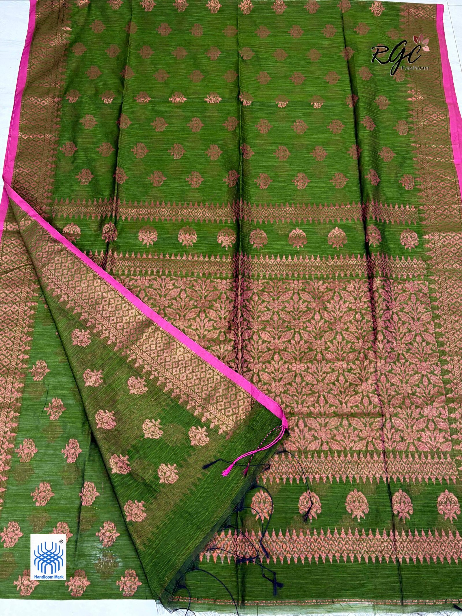 Olive Green Handloom Cotton Silk Benarasi Saree