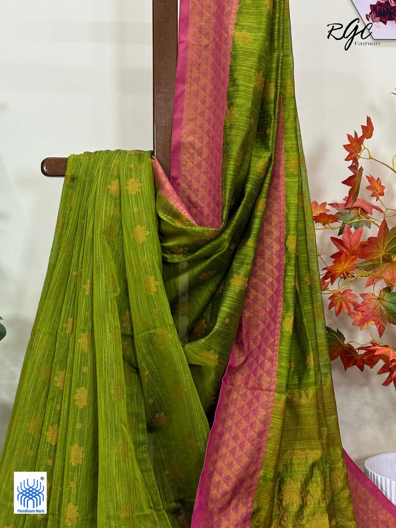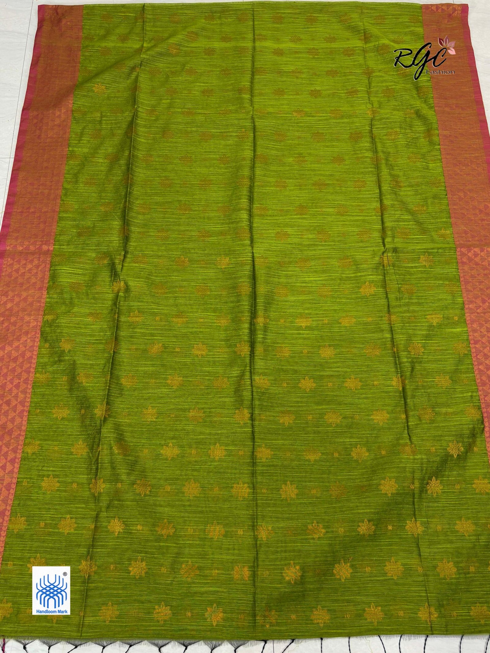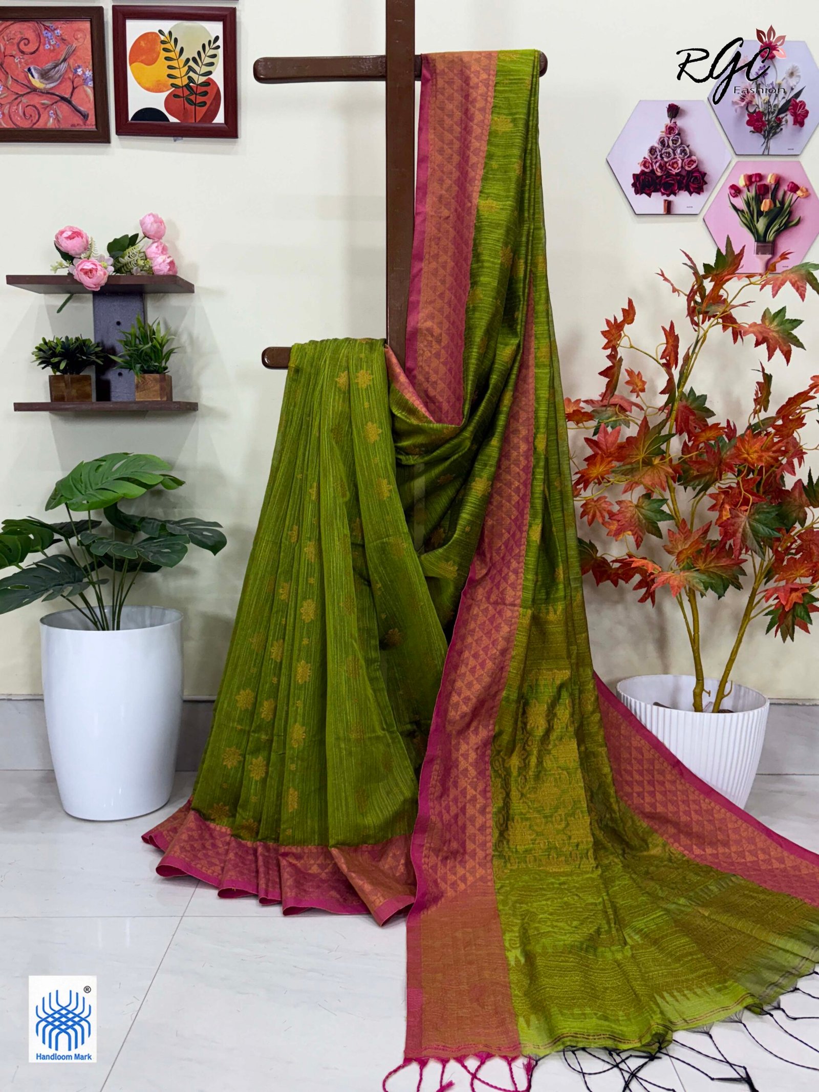 Bottle Green Handloom Cotton Silk Benarasi Saree