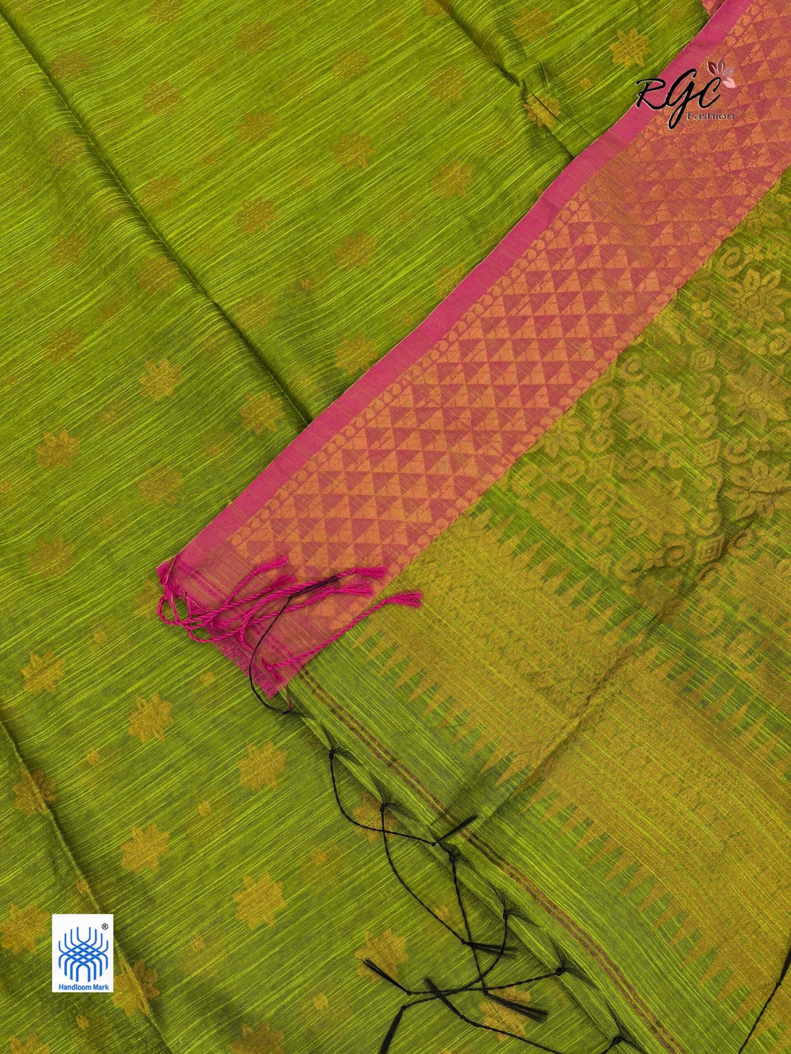 Rani Pink Handloom Cotton Silk Benarasi Saree
